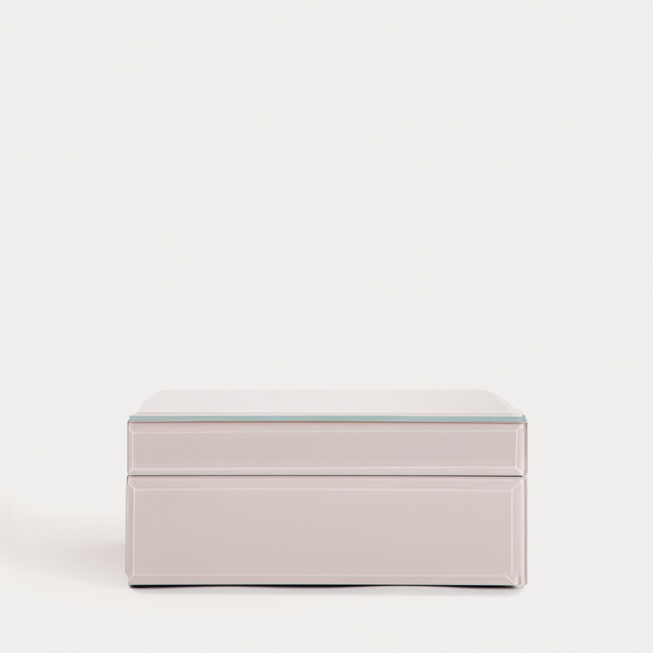 Cutia de bijuterii AERLA este fabricata dintr-o combinatie de sticla 50%, poliester 35% si MDF 15%. Elementele din sticla creeaza o impresie vizuala usoara, in timp ce constructia din MDF asigura stabilitate. Interiorul este finisat cu un material textil moale.