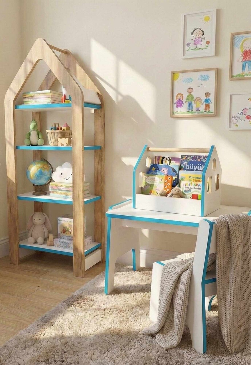 Cutie de cărți, Hanah Home, Artmtkbkcddy, 50x40x32 cm, Albastru/Alb