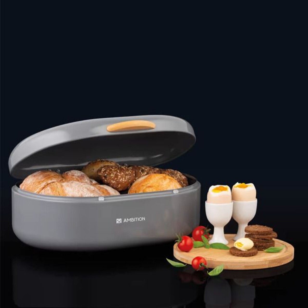 Cutie de paine Oliver, Ambition, 35x24x14.5 cm, otel/bambus, gri