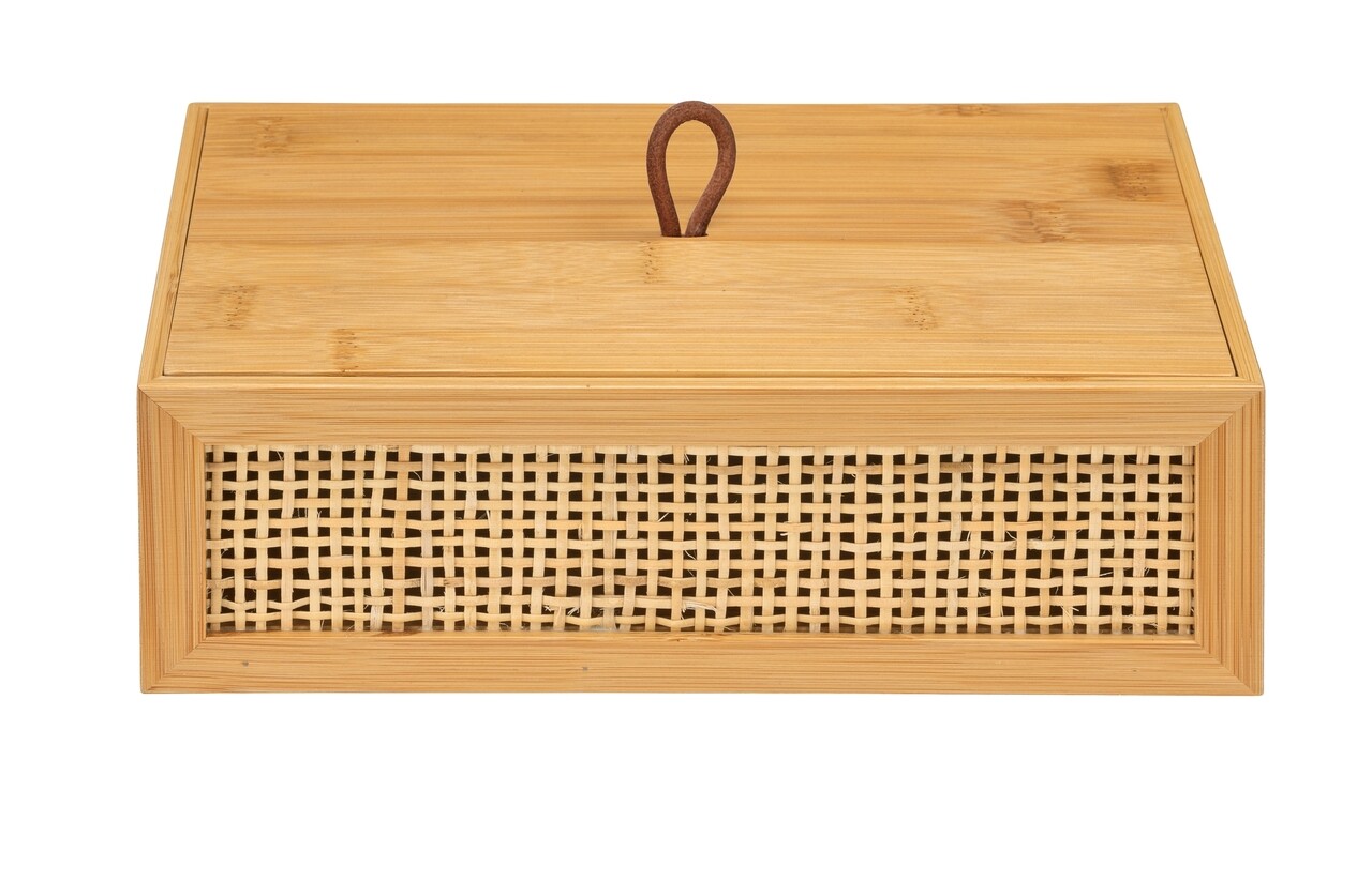 Cutie depozitare cu capac, Wenko, Allegre L, 22 x 7 x 15 cm, bambus/ratan, natur