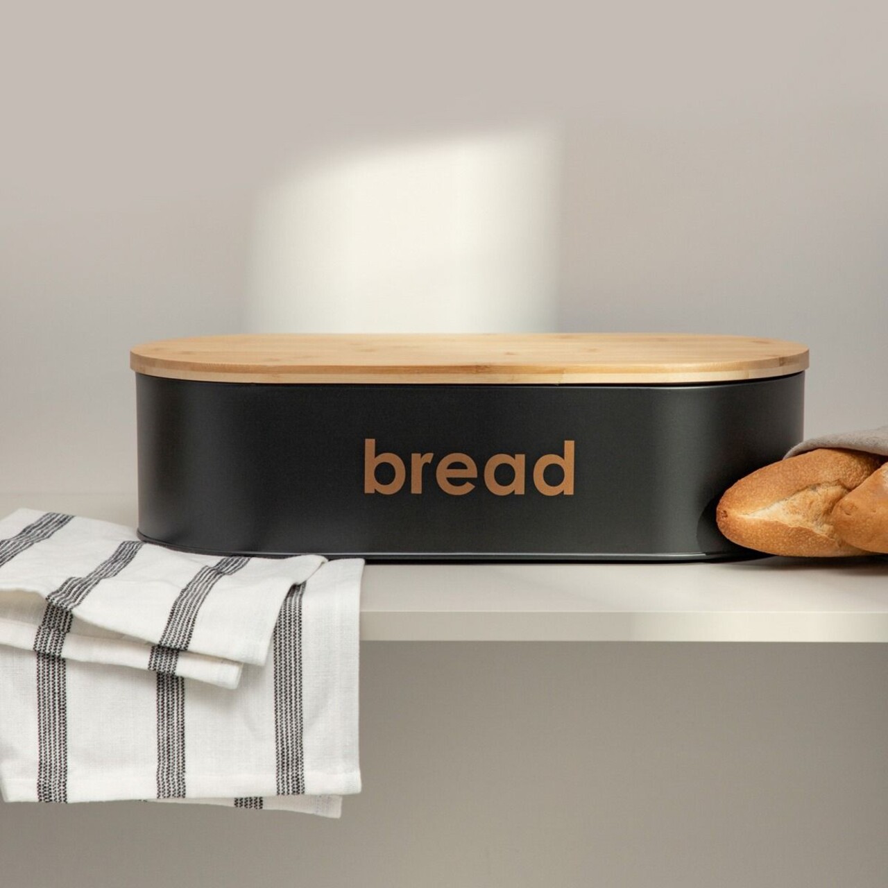 Cutia pentru paine poate gazdui mai multe tipuri de paine, protejandu-le impotriva uscarii si a contactului cu aerul. Datorita formei sale simple, arata excelent pe blatul de bucatarie, organizand in acelasi timp spatiul si conferindu-i un caracter stilat.