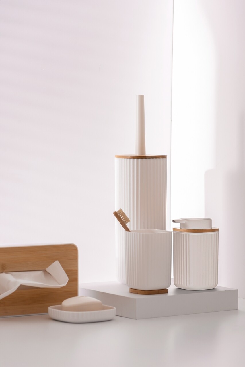 Cutie depozitare servetele, Wenko, Rotello, 24 x 7.5 x 12.7 cm, plastic/bambus, alb/maro