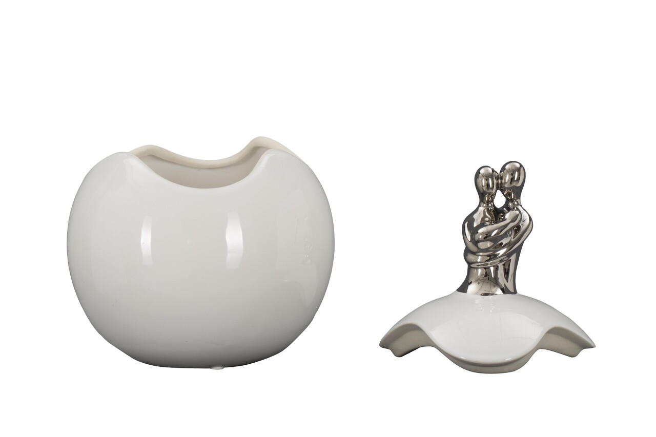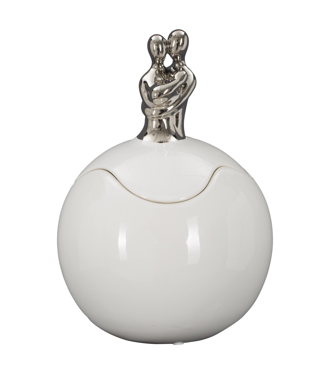 Cutie pentru bijuterii Family, Mauro Ferretti, Ø 18x27.5 cm, ceramica, alb/argintiu
