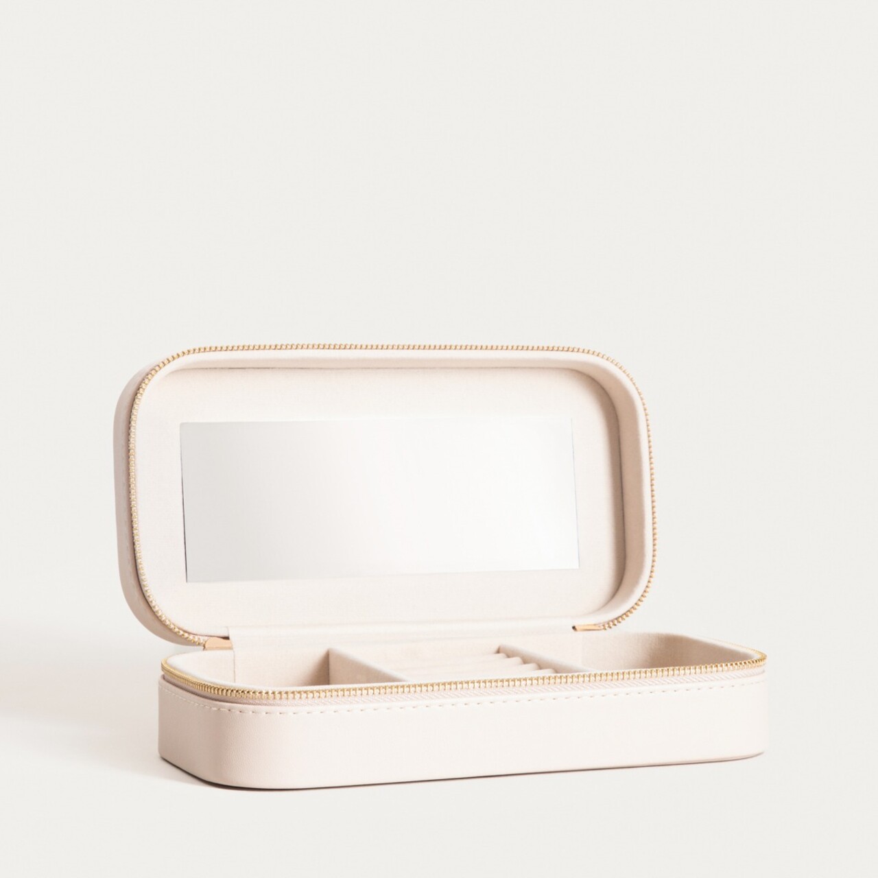 Nunta sa, cusaturile fine si finisajul rafinat o fac usor de integrat in decorul oricarei masute de toaleta sau comode. Oglinda incorporata iti permite sa iti pui bijuteriile cu usurinta, oriunde te-ai afla.