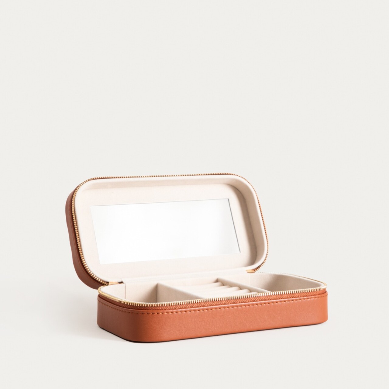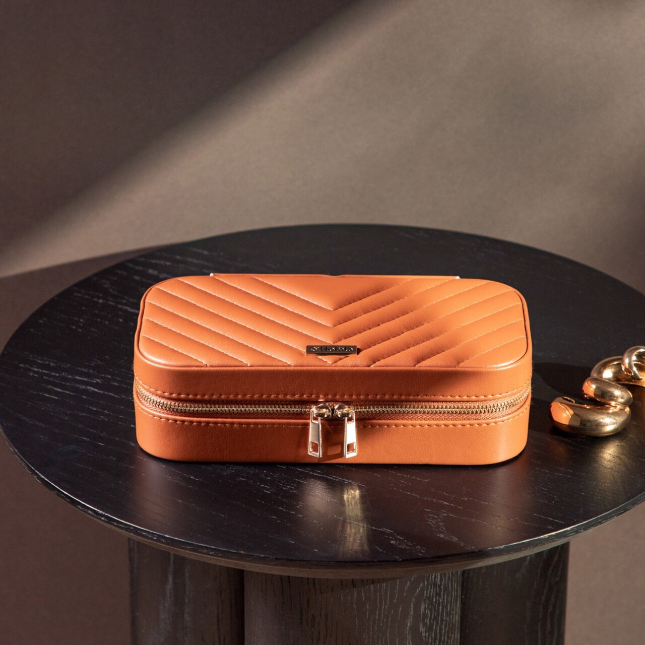 Nunta sa, cusaturile fine si finisajul rafinat o fac usor de integrat in decorul oricarei masute de toaleta sau comode. Oglinda incorporata iti permite sa iti pui bijuteriile cu usurinta, oriunde te-ai afla.
