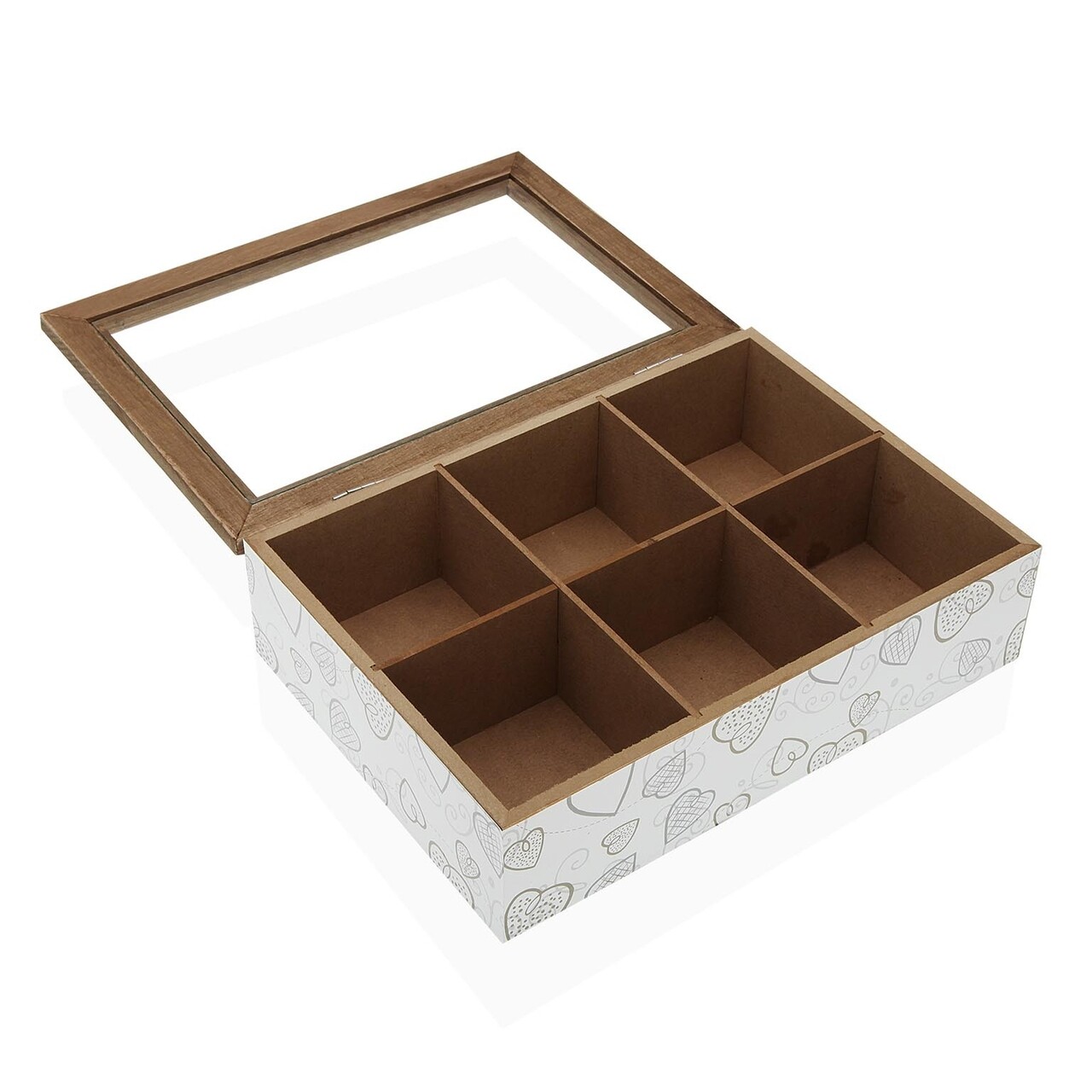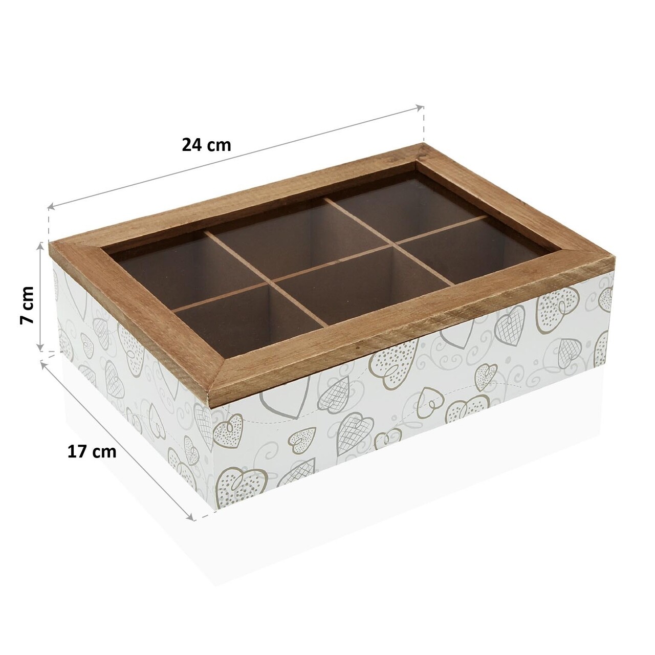 Cutie pentru ceai cu 6 compartimente Cozy Hearts , Versa, 24 x 17 x 7 cm, lemn