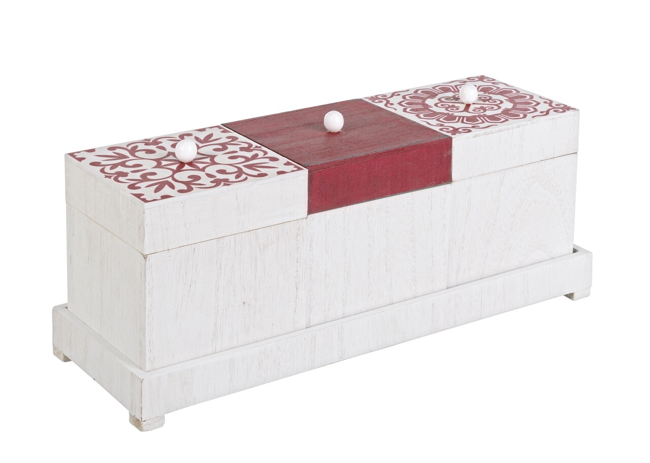 Cutie pentru depozitare bijuterii, Bizzotto, Barcellona, 34.5 x 12.5 x 14.5 cm, mdf, alb/rosu