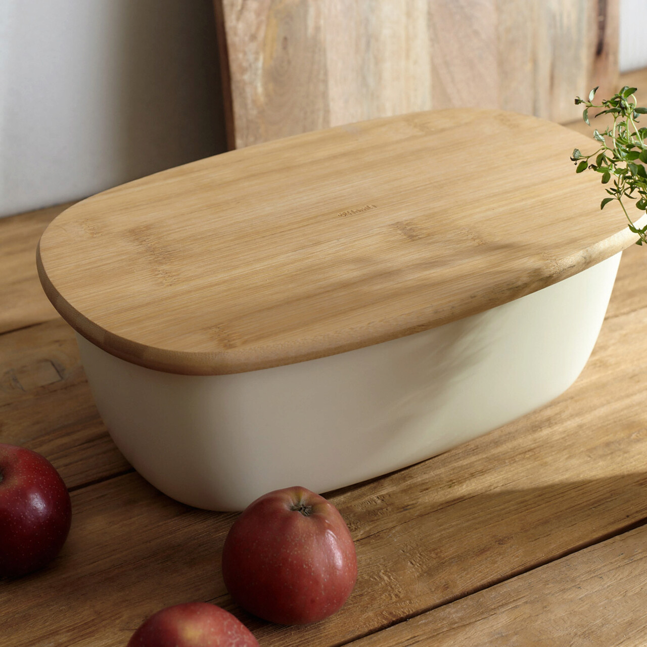 Cutie pentru paine Nores , Homla, 37x22x14 cm, plastic/bambus, bej/natur