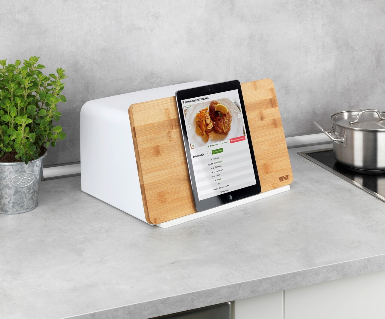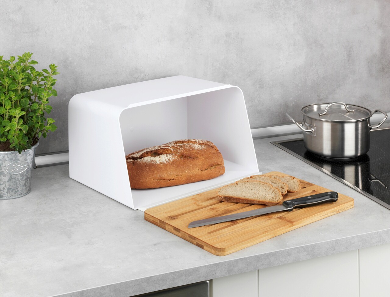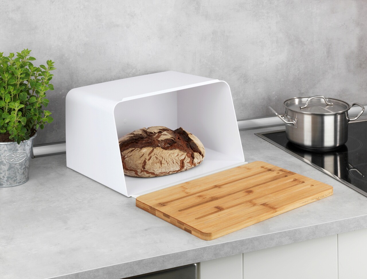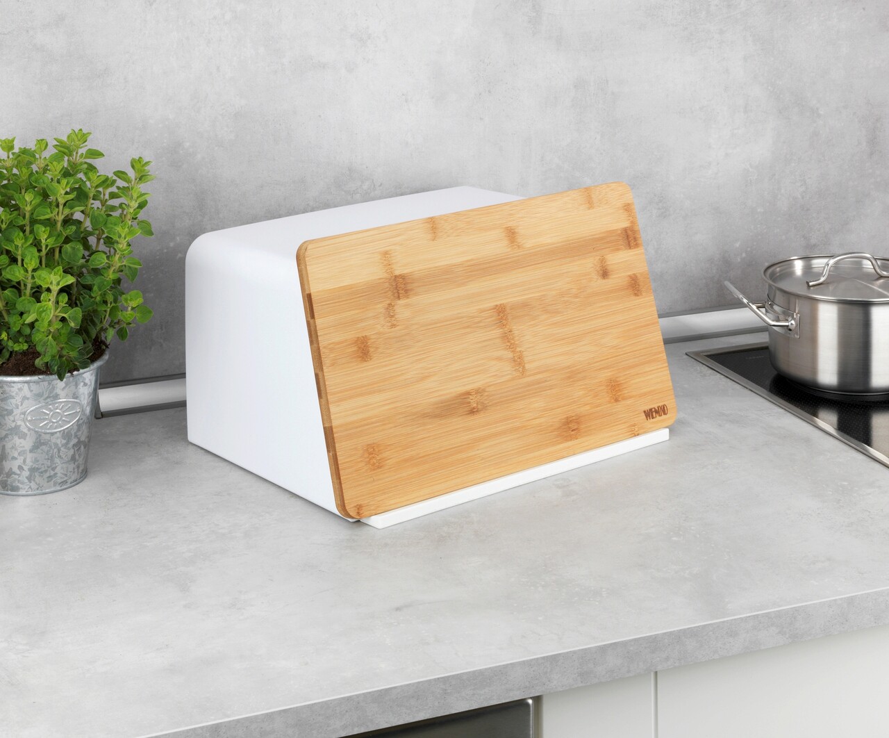 Cutie pentru paine, Wenko, Kubo, 35 x 26.5 x 20.5 cm, plastic/bambus, alb/maro