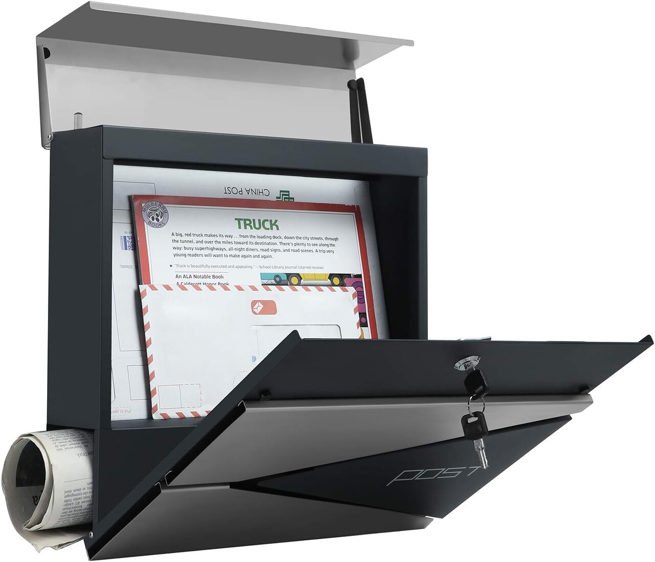 Cutia postala este prevazuta cu un suport inferior pentru a va gazdui ziarele, cataloagele, revistele si orice altceva doriti sa va fie livrat.