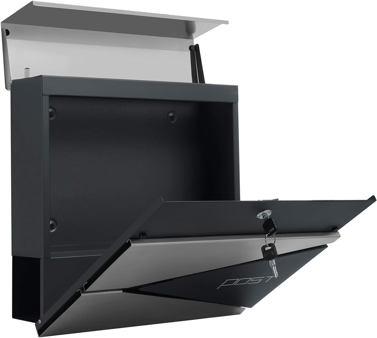 Cutie postala Modern Post Box, Songmics, 37x10.5x37 cm, cu suport ziare, otel acoperit cu pulbere, argintiu/antracit