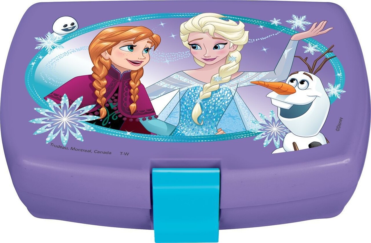 Cutie sandwich din plastic Frozen, ideala pentru copiii care doresc sa serveasca masa alaturi de personajele preferate. Foarte practica, aceasta este usor de transportat si curatat, si modul ideal de a depozita mancarea celor mici.