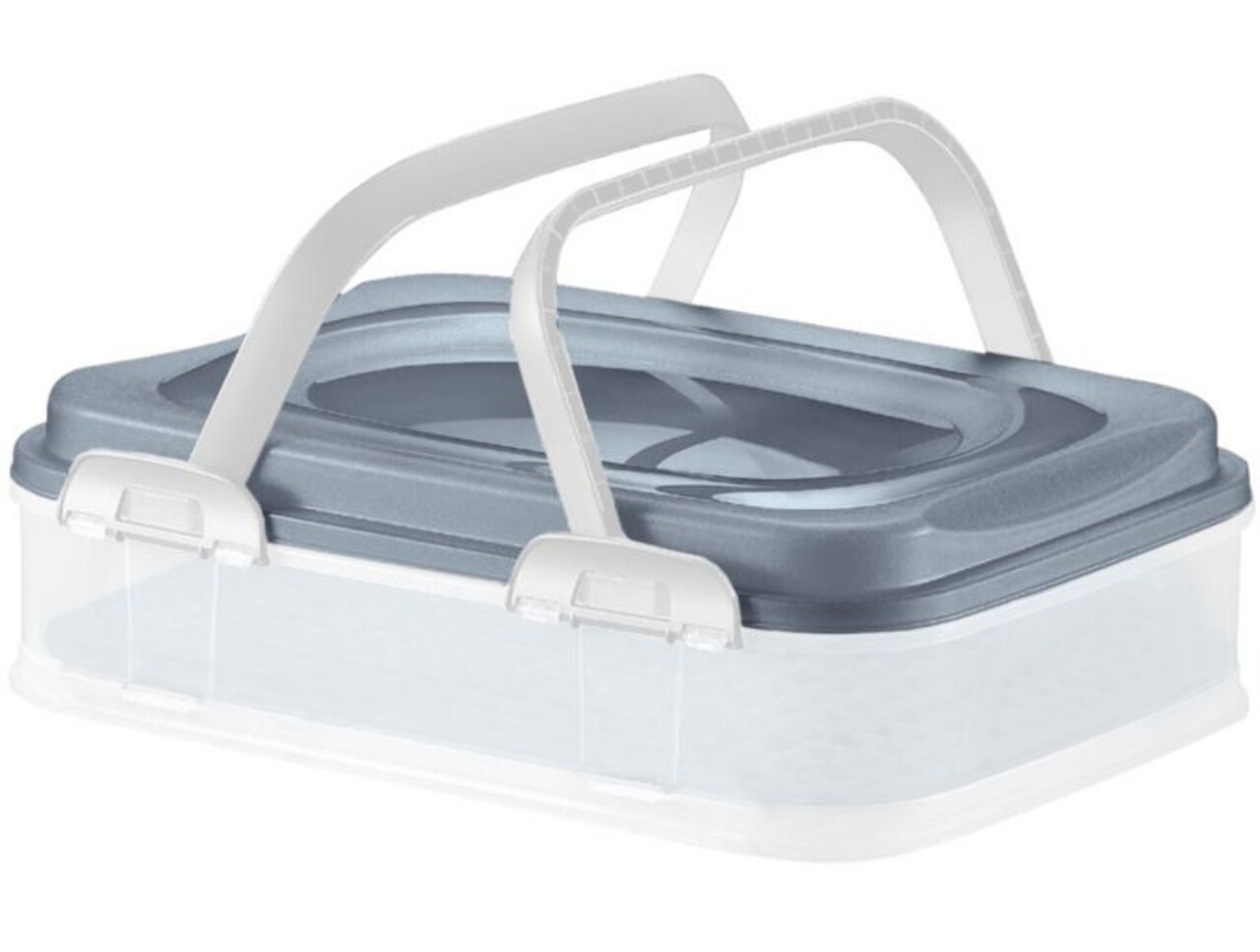 Cutie din plastic cu manere, pentru transportarea prajiturilor. Colectia Dolce propune o solutie deosebit de practica pentru transportarea deserturilor preferate. Cutiile Dolce au manere practice si confortabile, sunt incapatoare, si nu in ultimul rand asigura pastrarea prospetimii si aromei prajiturilor. Disponibile in diferite culori vibrante.