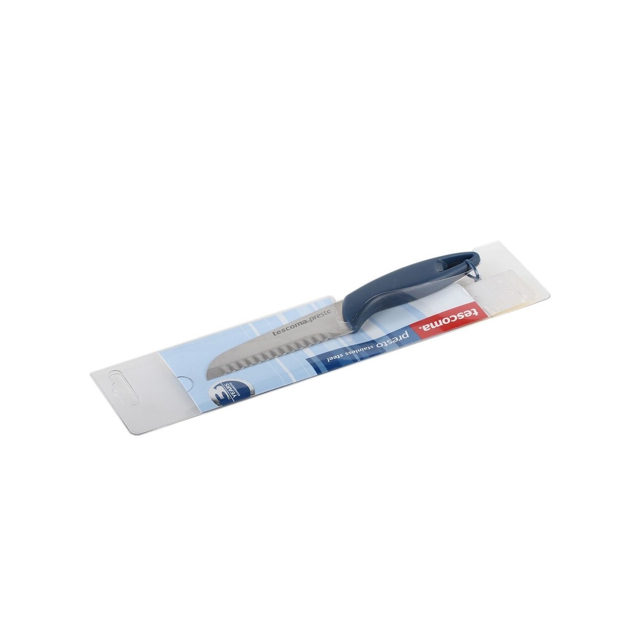Gama Presto de la Tescoma va ofera o linie completa pentru bucatarie, incluzand ustensile, accesorii, cutite, vase de gatit si multe altele. Produsele au o calitate superioara, sunt foarte practice si ergonomice, avand un design functional si placut, la un pret accesibil. Cutitul cu lama lata din otel inoxidabil si maner ergonomic din plastic rezistent, este perfect pentru intins untul sau cremele. Poate fi spalat, in conditii de siguranta, in masina de spalat vase.