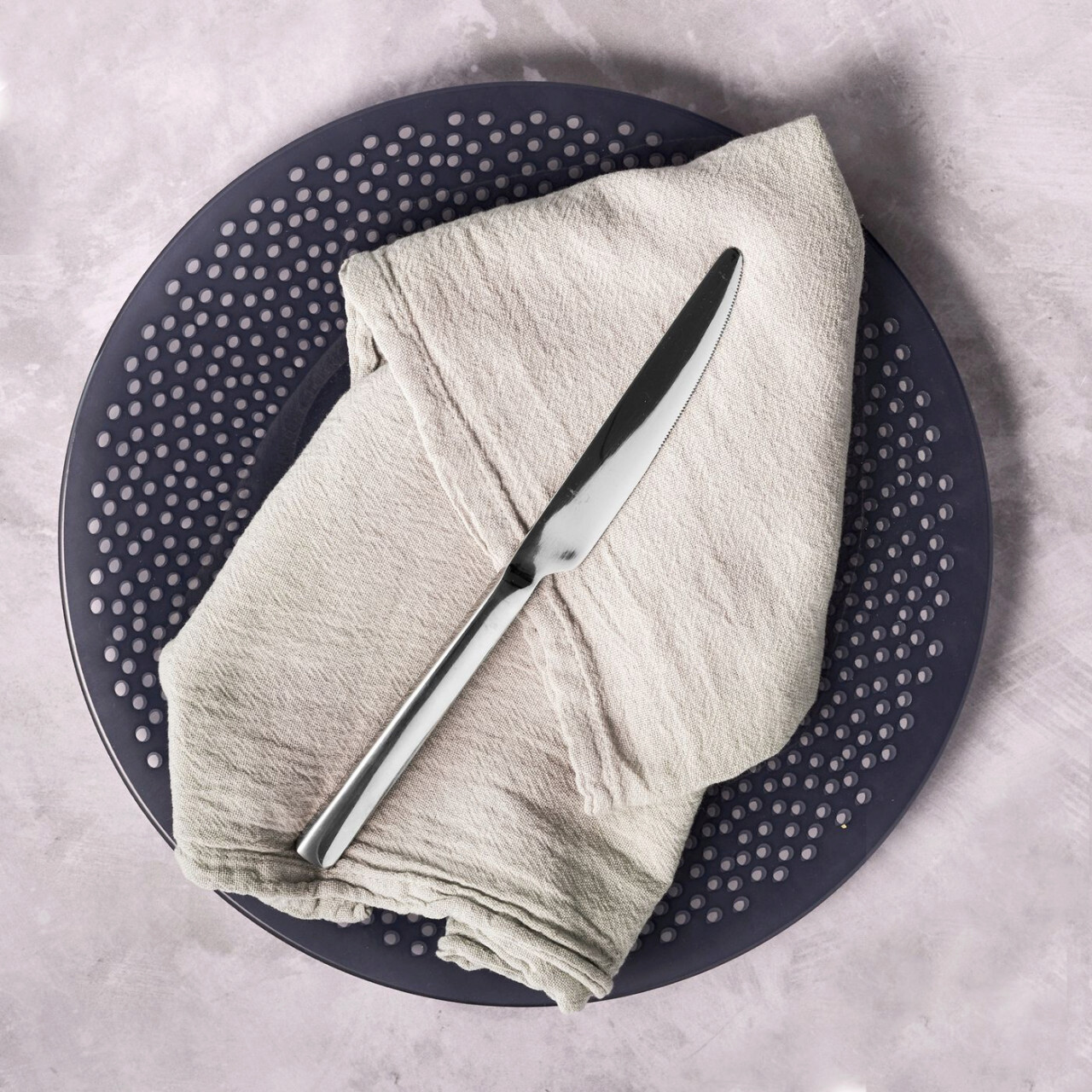 Cutit pentru servirea desertului din otel inoxidabil de foarte buna calitate. Cu un design clasic insa elegant, potrivit pentru orice aranjament, acesta se poate curata foarte usor in masina de spalat vase.