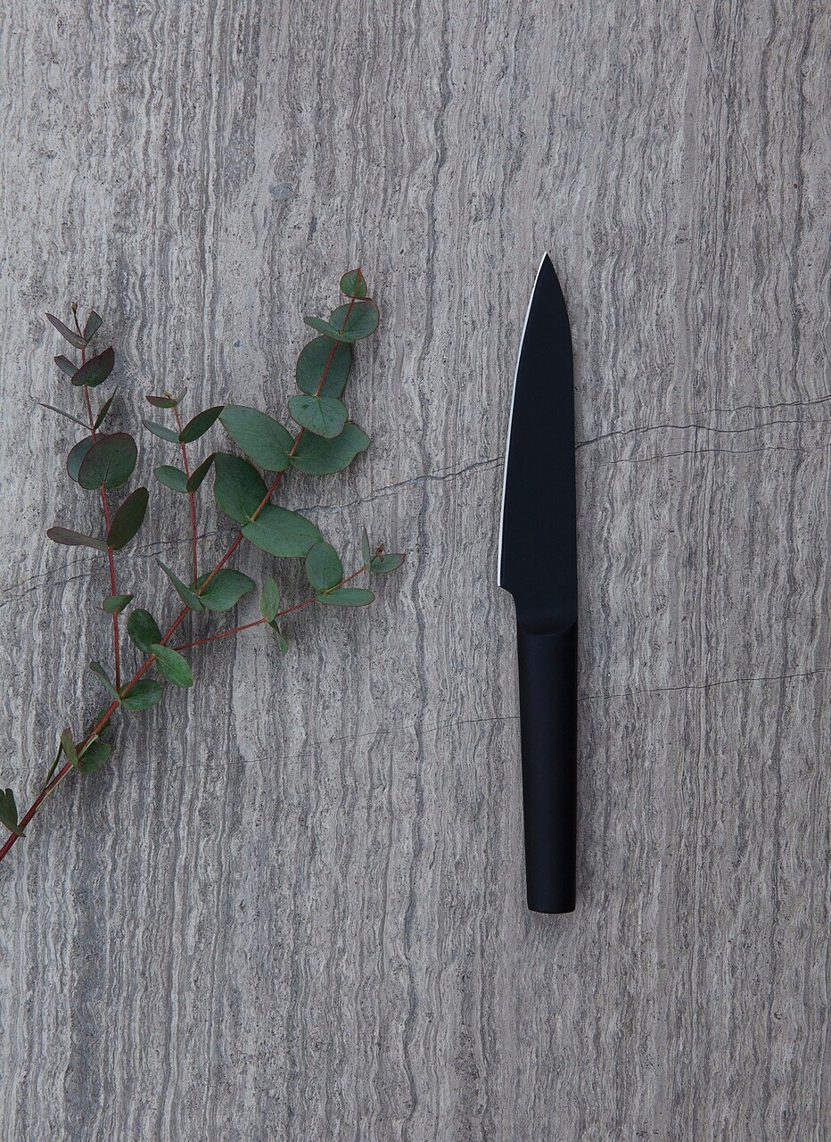 Daca aveti nevoie de un cutit versatil, excelent pentru numeroase lucrari de taiere, nu mai cautați. Acest cutit utilitar complet negru este partenerul perfect pentru taierea unei varietati de fructe, legume si ierburi. Lama sa ascutita, cu invelis din titan si antiaderent, va asigura ca alimentele nu se vor lipi de cutit, in timp ce boltul greu ofera un echilibru perfect pentru un control sporit. A se spala manual. Lungime lama: 13 cm.