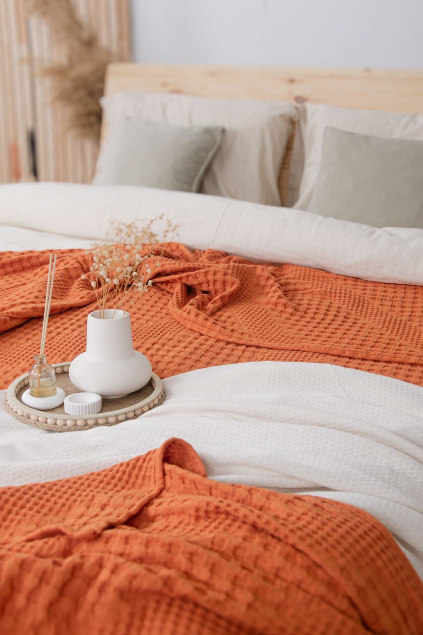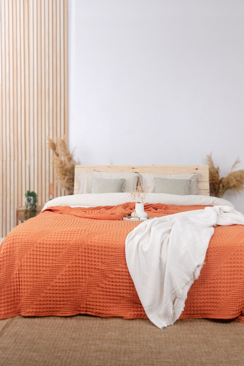 Cuvertură de pat King, L'essentiel Maison, Joanna, Bumbac, Portocaliu