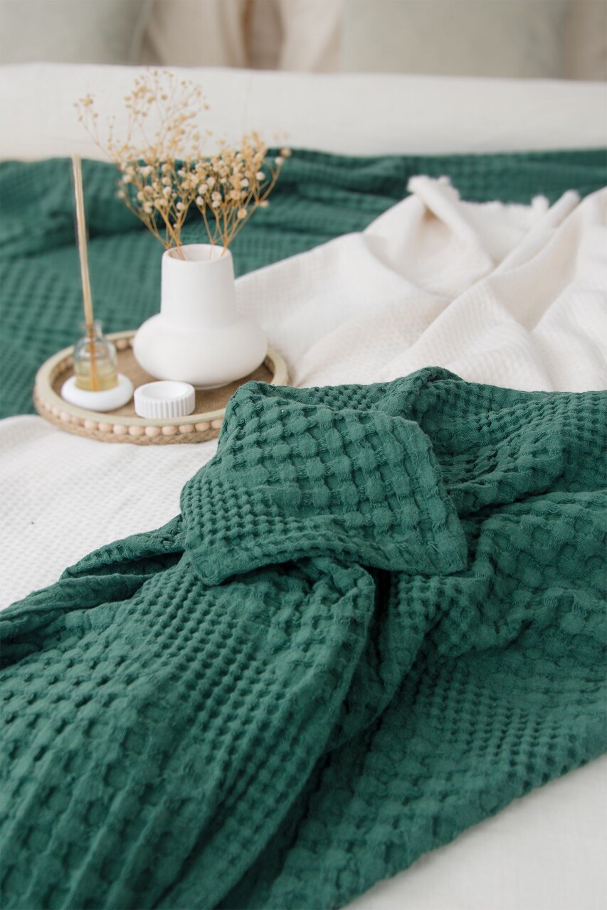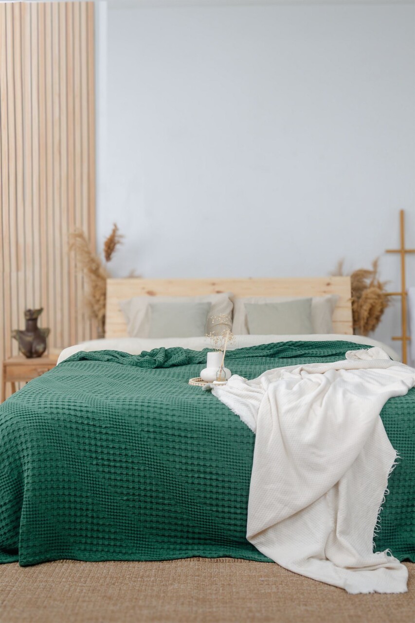 Cuvertură de pat King, L'essentiel Maison, Joanna, Bumbac, Verde inchis