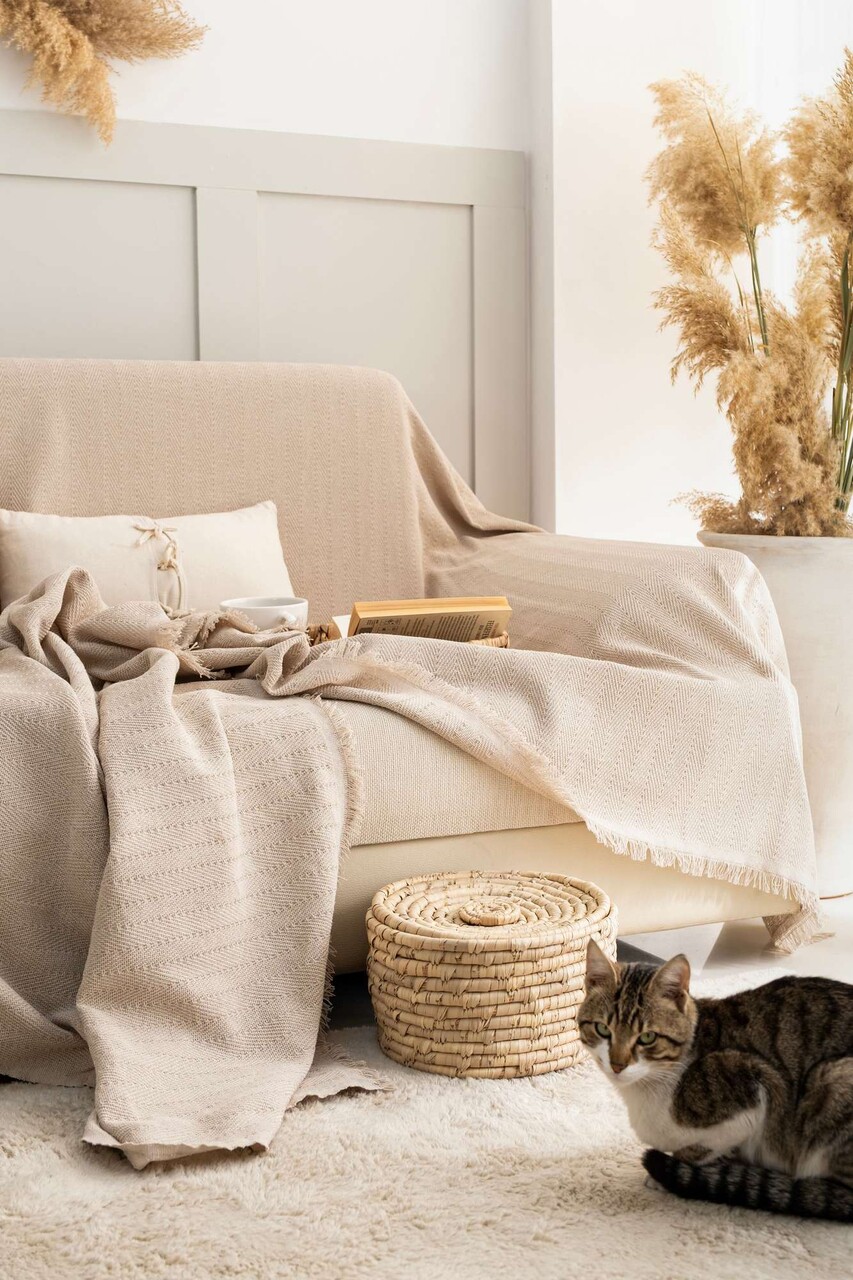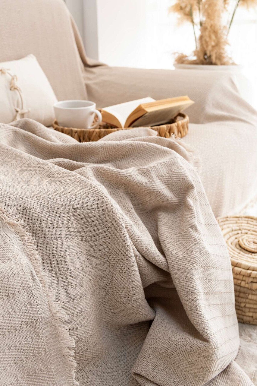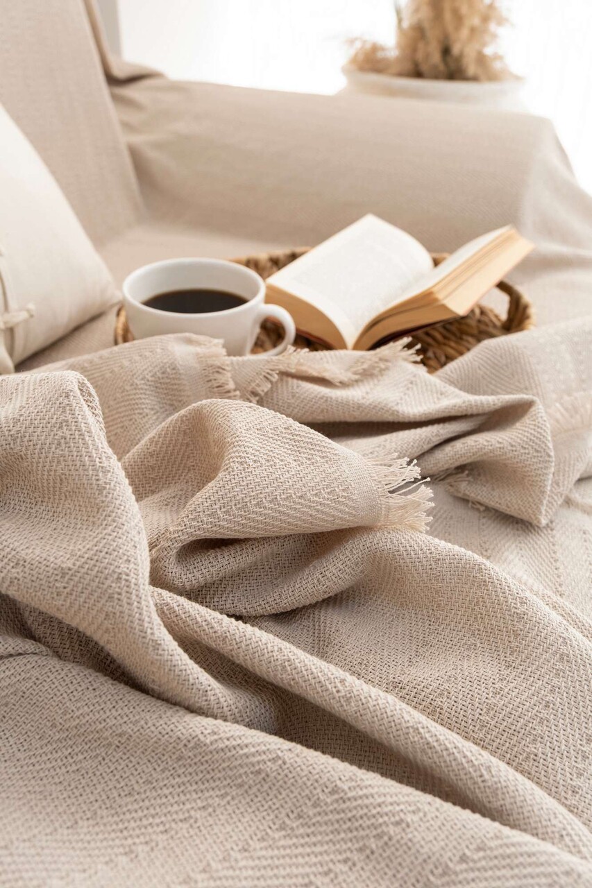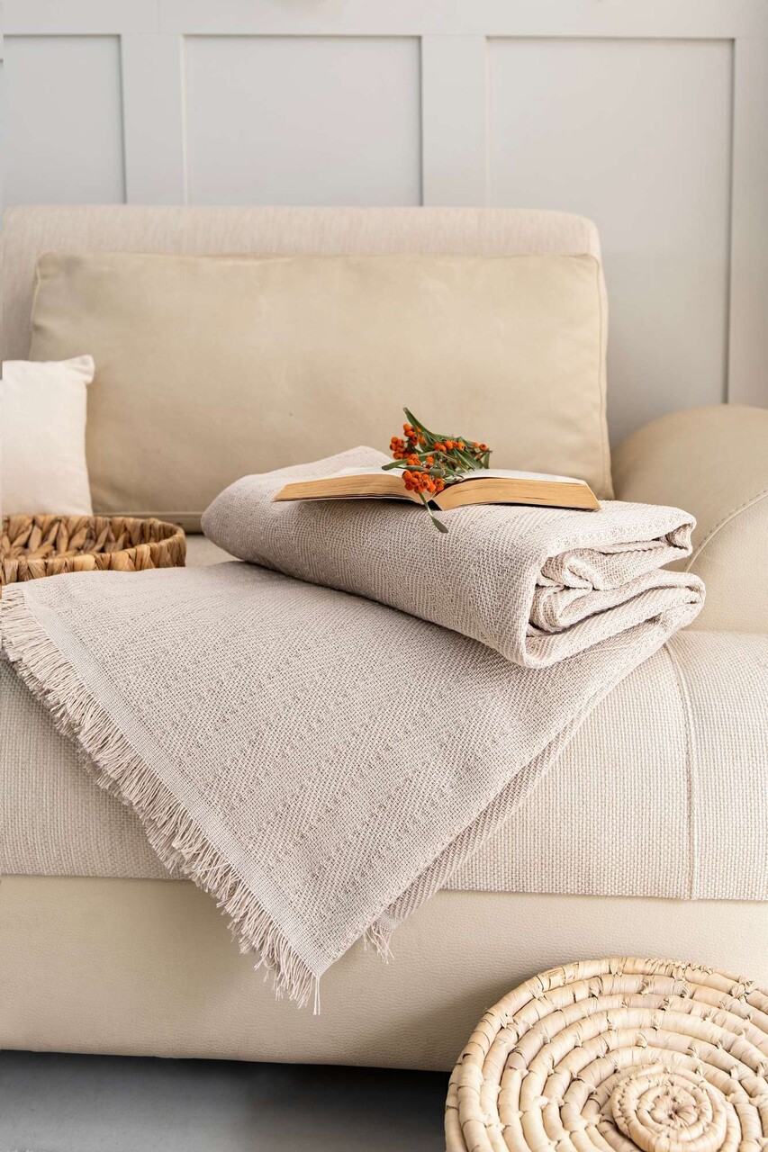 Cuvertura de pat, L'essentiel Maison, Rio, Bumbac reciclat, Bej