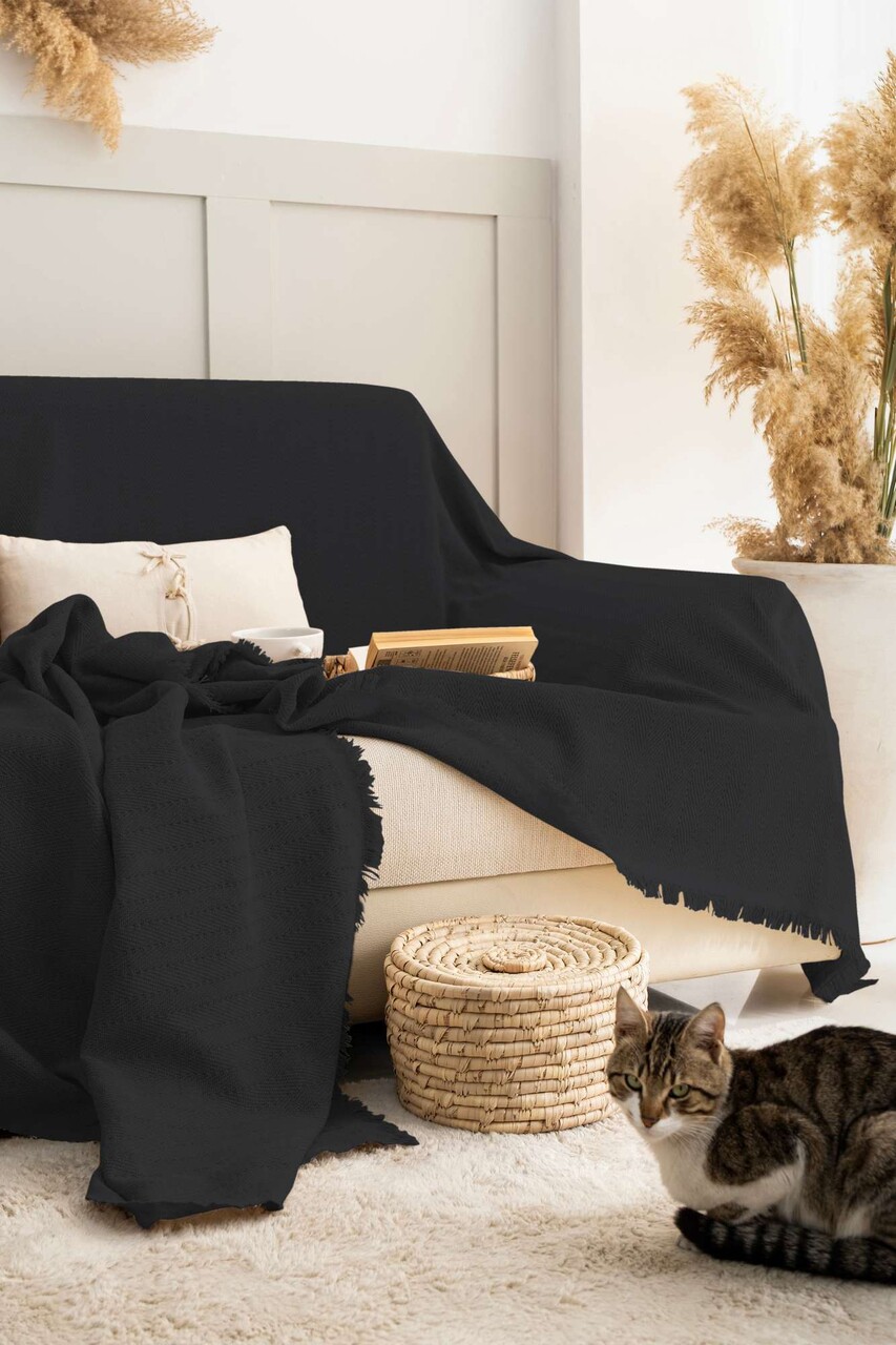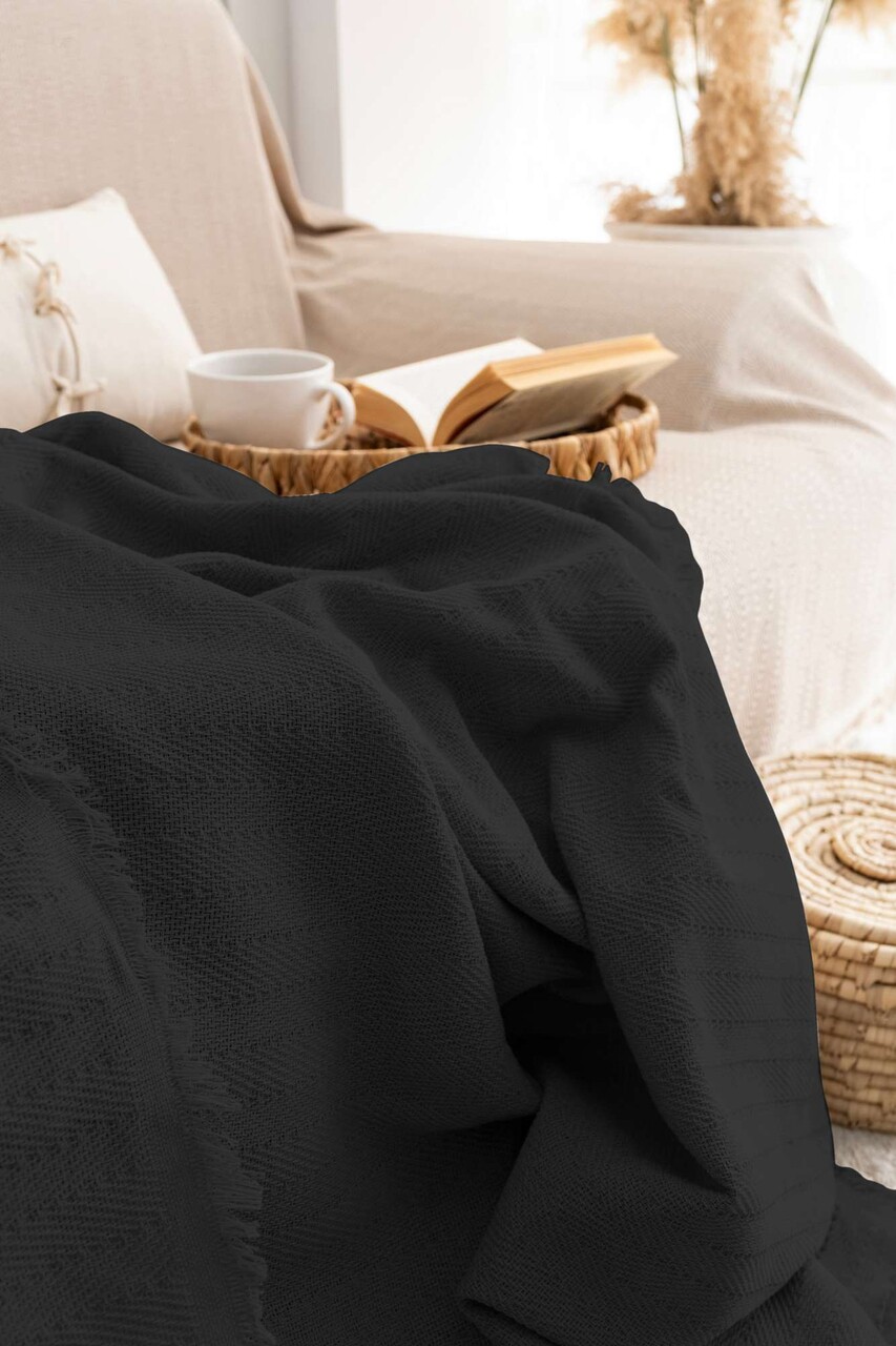 Cuvertura de pat, L'essentiel Maison, Rio, Bumbac reciclat, Fumuriu