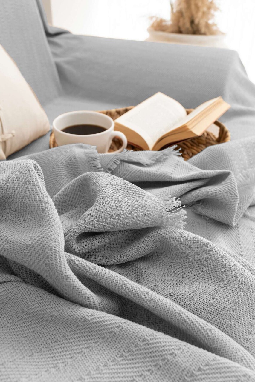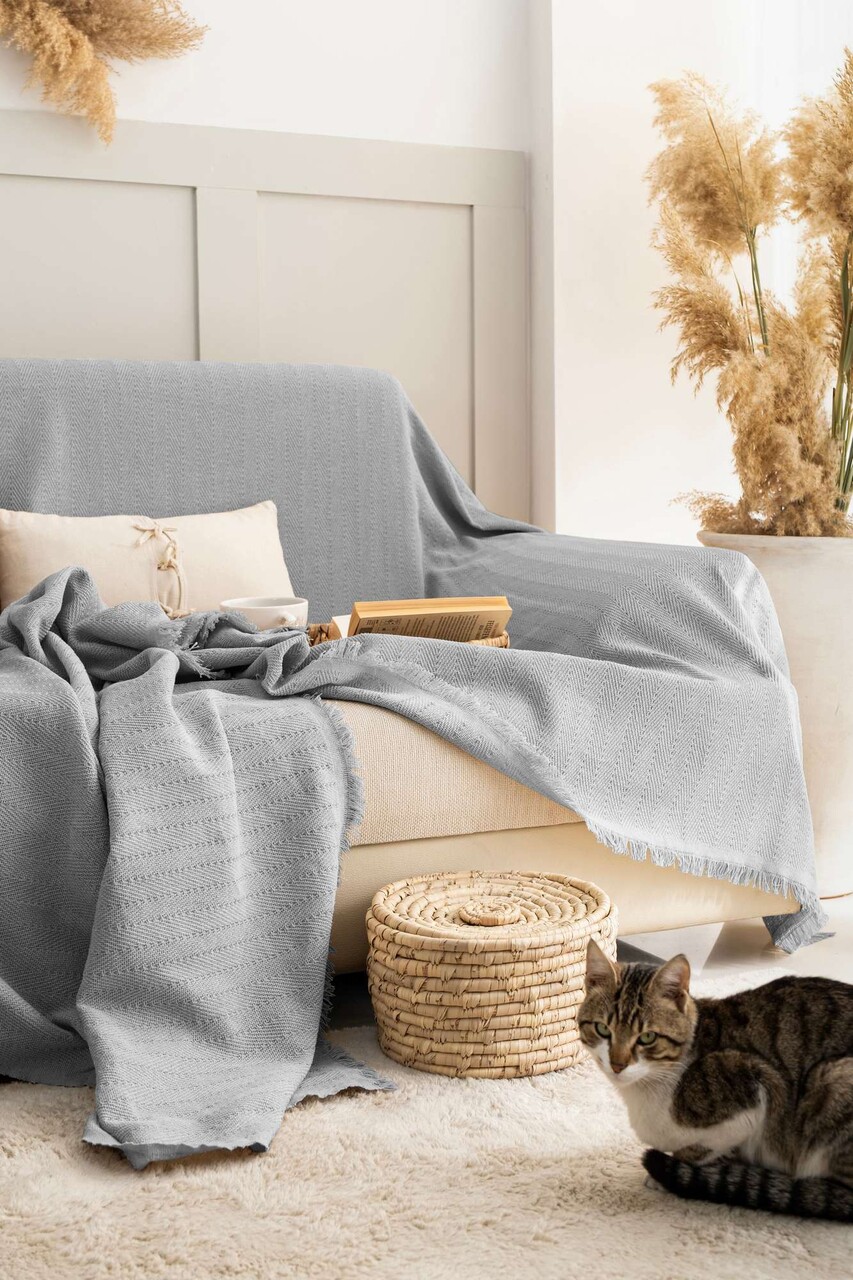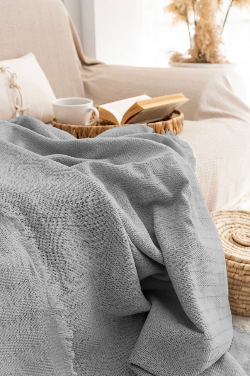 Cuvertura de pat, L'essentiel Maison, Rio, Bumbac reciclat, Gri deschis