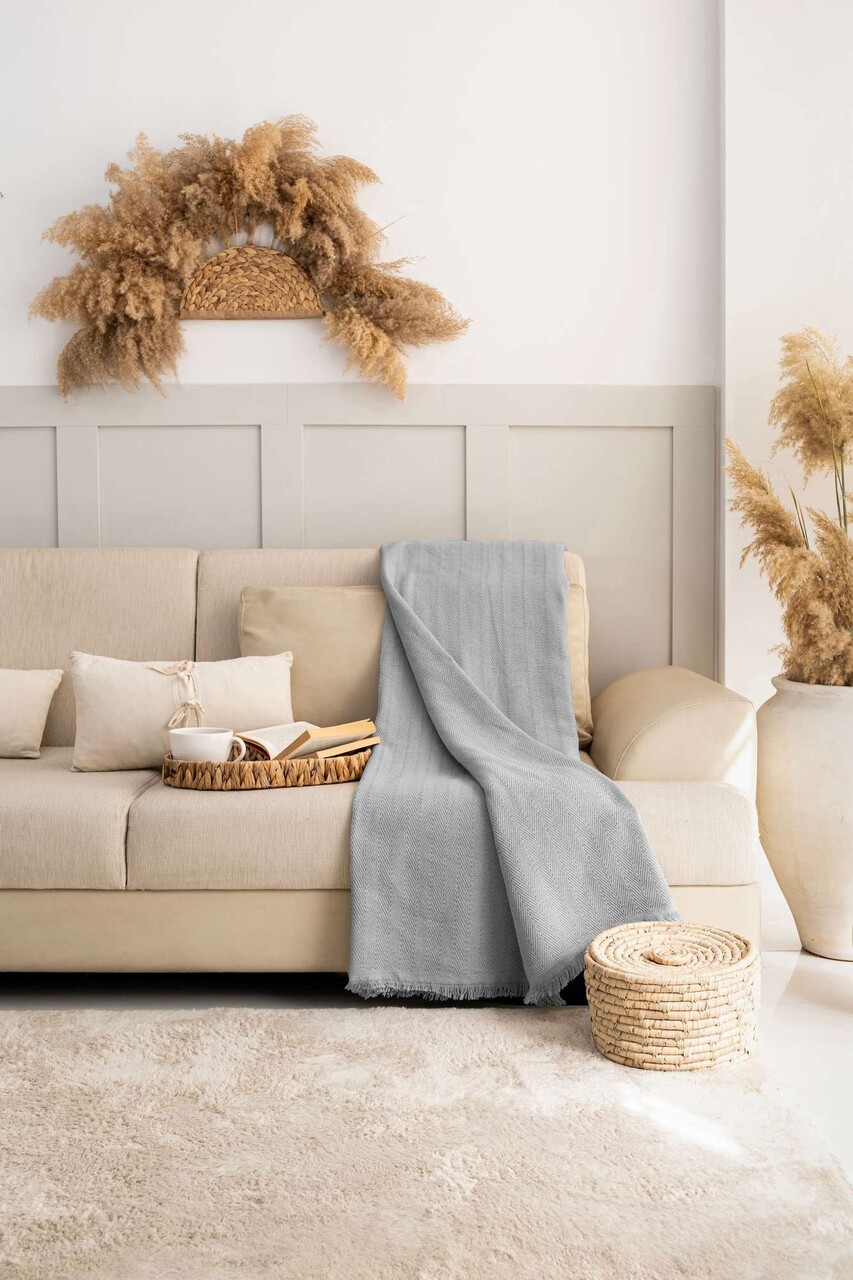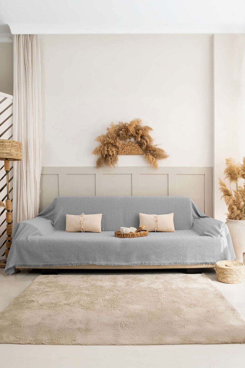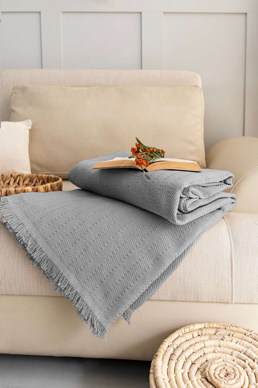 Cuvertura de pat, L'essentiel Maison, Rio, Bumbac reciclat, Gri deschis