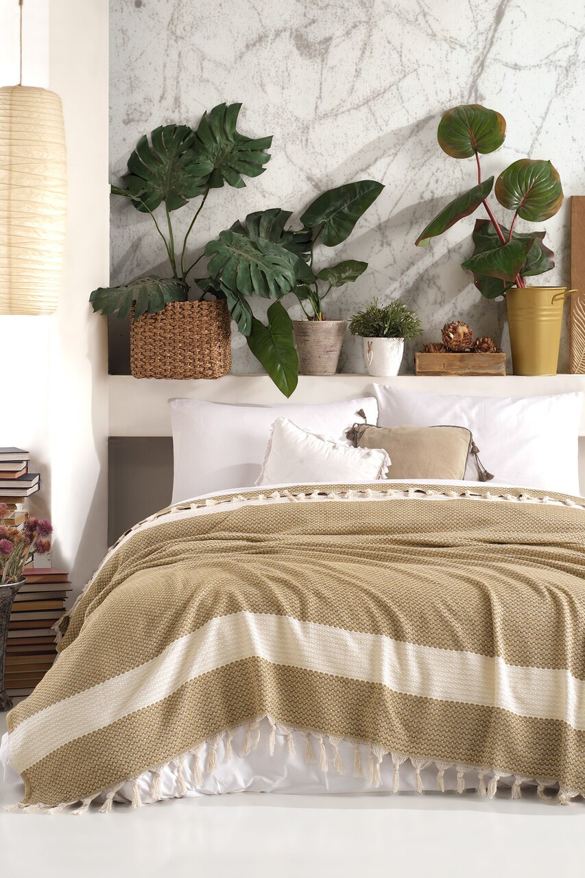 Cuvertura Double Pique, 200x230 cm, 100% bumbac, Seritli, Viaden, galben mustar
