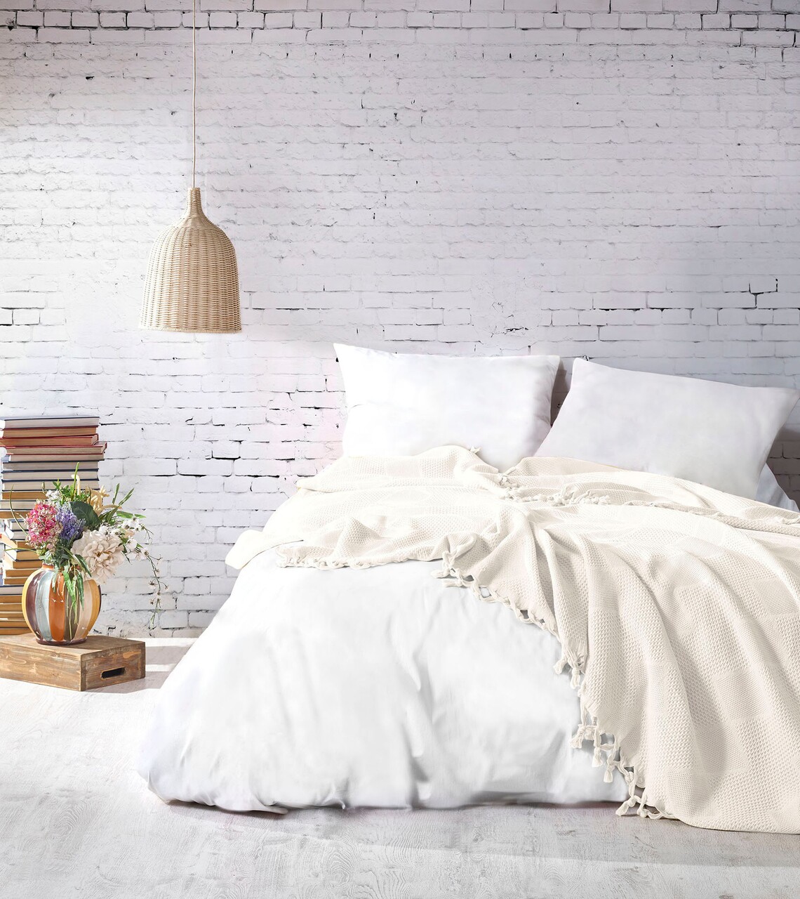 Cuvertura Double Pique, 220x240 cm, 100% bumbac, Mona, Saheser, crem