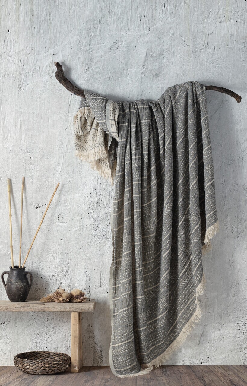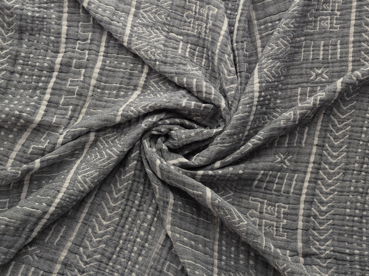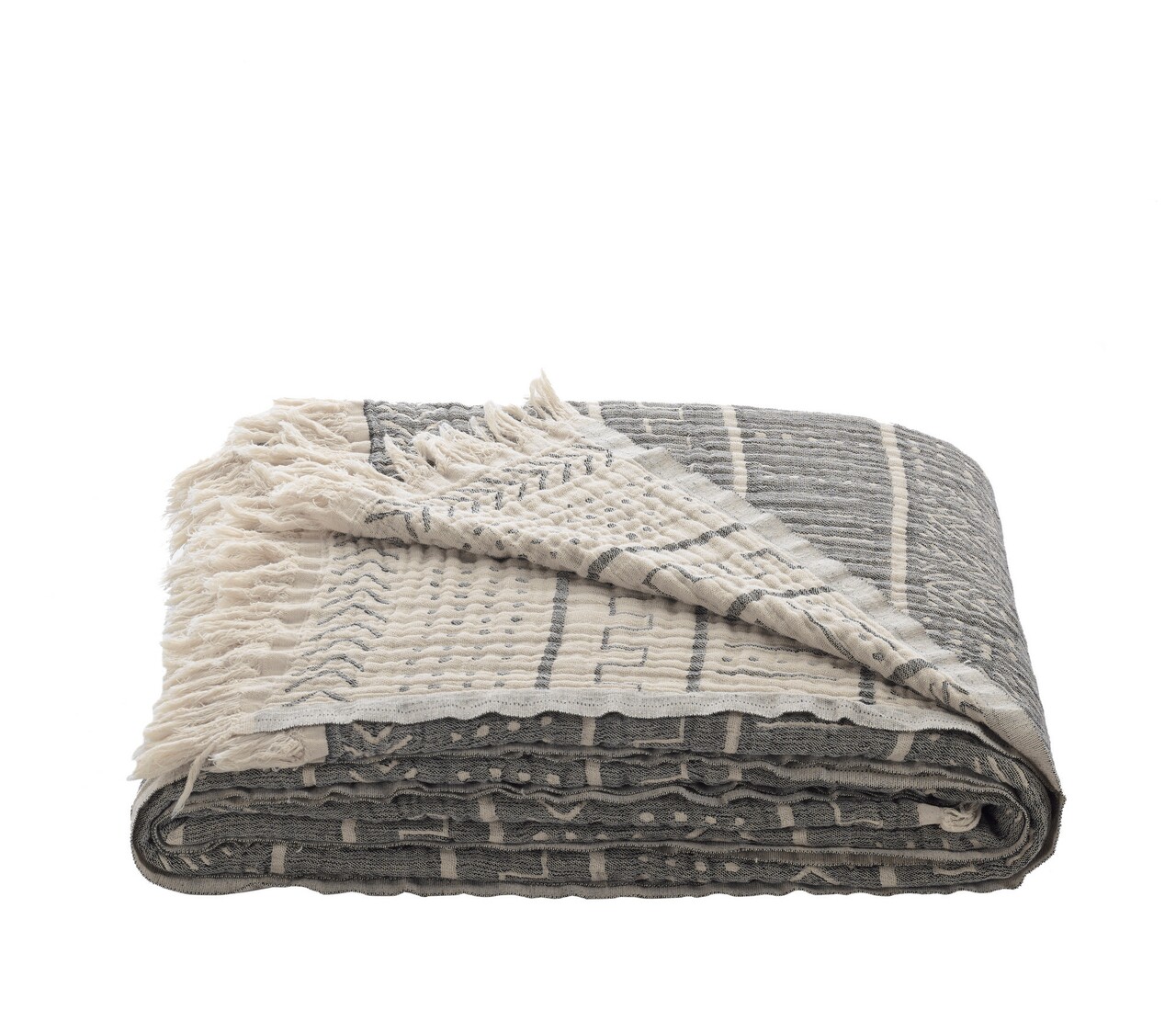 Cuvertura Double Pique, 220x240 cm, muselina din 100% bumbac, Etno, Viaden, antracit