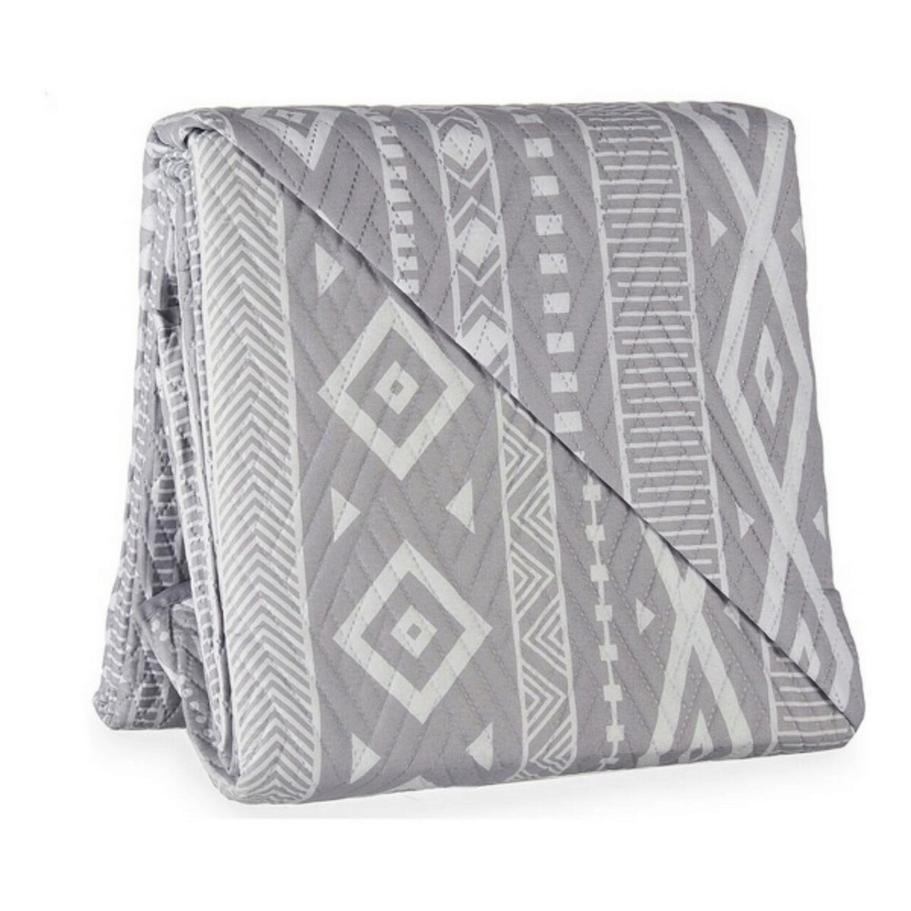 Cuvertura matlasata 2 fete Single Ethnic, Gift Decor, 180 x 260 cm, poliester, gri/alb