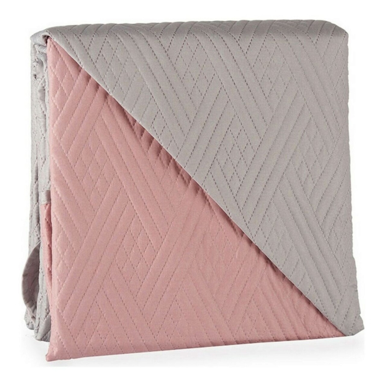 Cuvertura matlasata 2 fete Single, Gift Decor, 180 x 260 cm, poliester, gri/roz