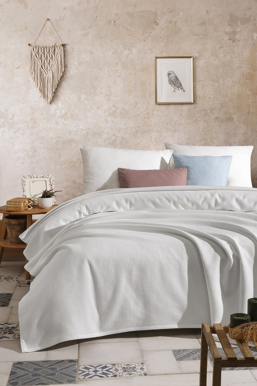 Cuvertura matlasata dubla, Bal Peteği - White, Viaden, Bumbac