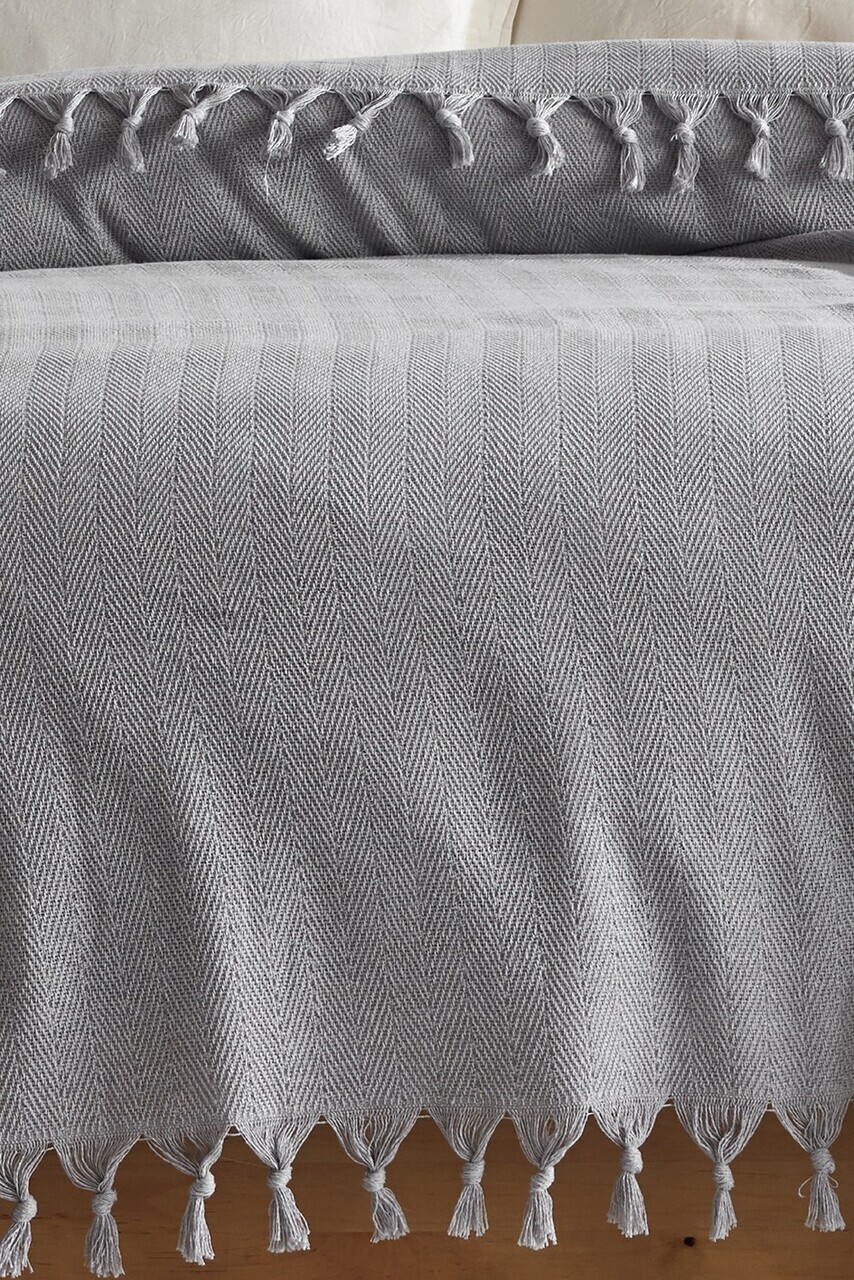 Cuvertura matlasata dubla, L'essentiel Maison, Berlino, Bumbac reciclat, Gri deschis