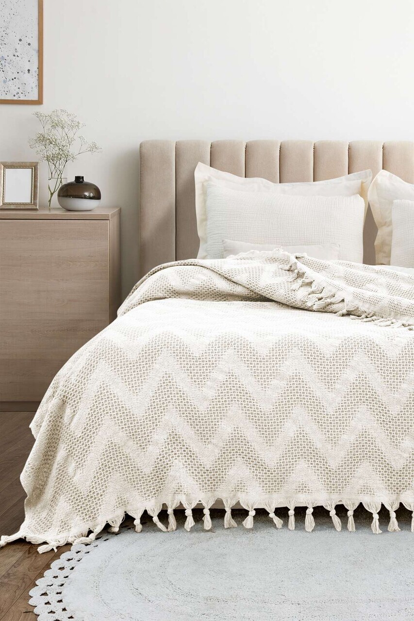 Cuvertura matlasata dubla, L'essentiel Maison, Naomi, Bumbac reciclat, Crem