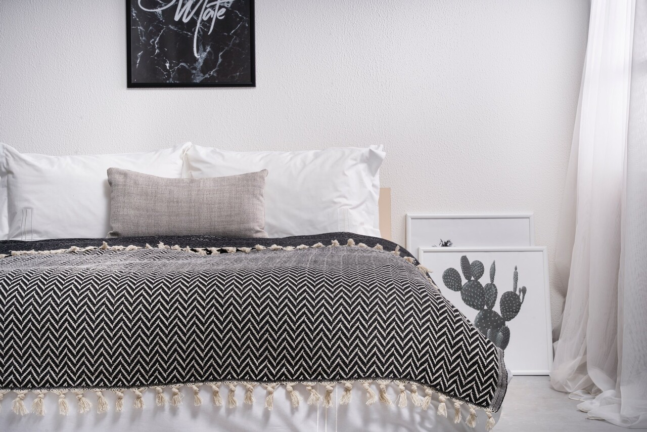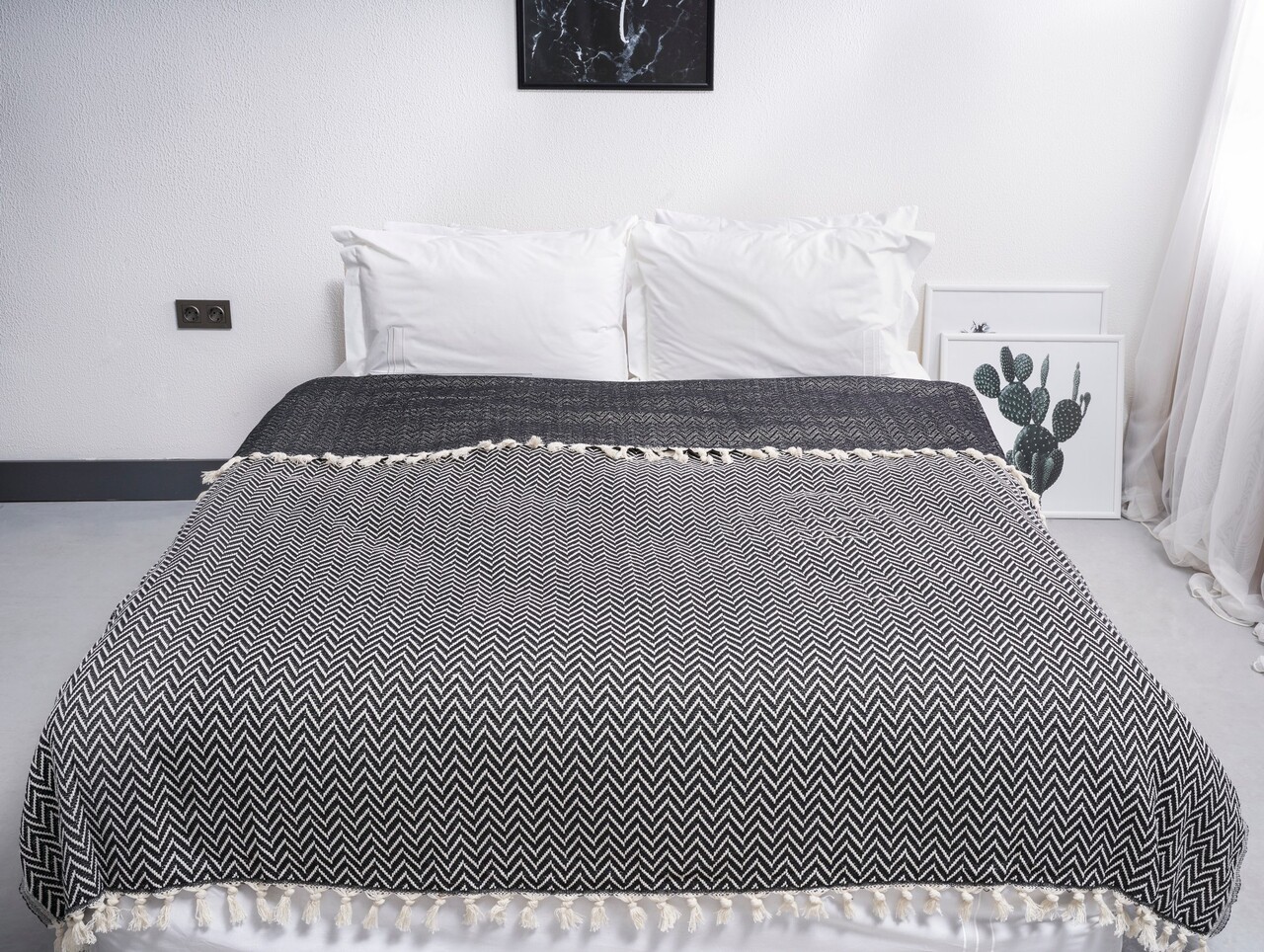 Cuvertura matlasata dubla, Zigzag - Black, ICF Bedroom, Bumbac