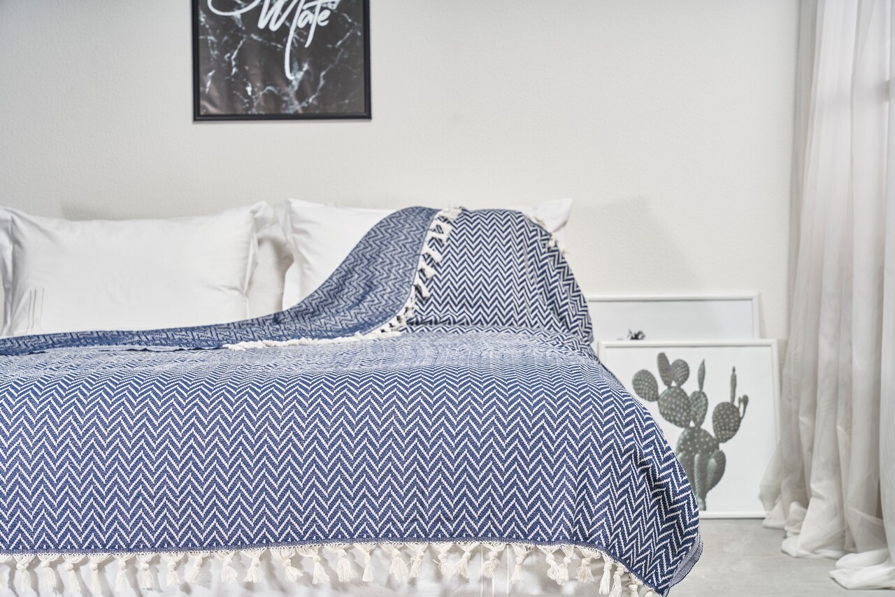 Cuvertura matlasata dubla, Zigzag - Blue, ICF Bedroom, Bumbac