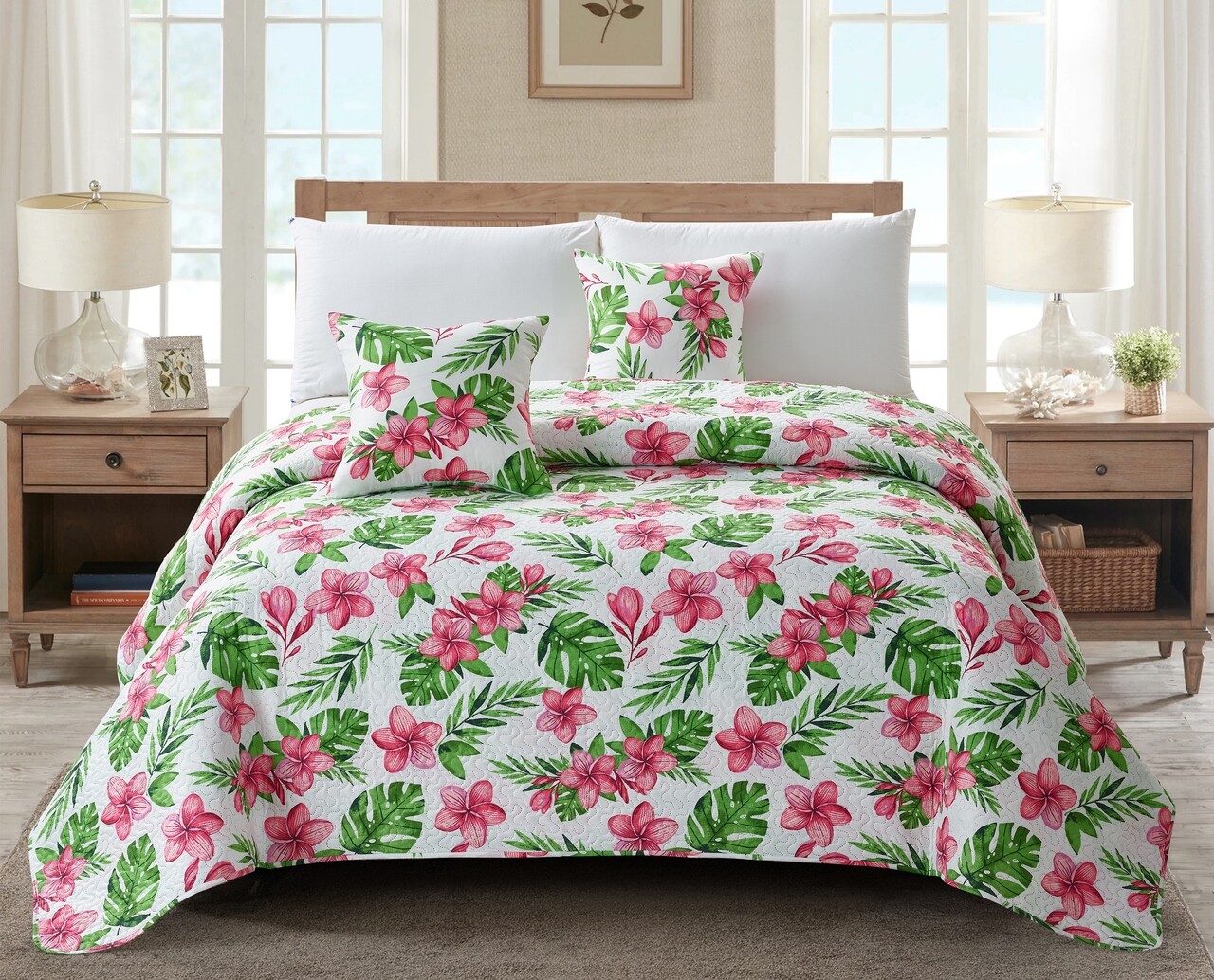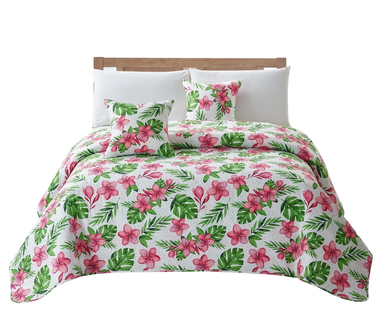 Cuvertura Mostera, Fashion Goods, 200x220 cm, microfibra, alb/roz/verde