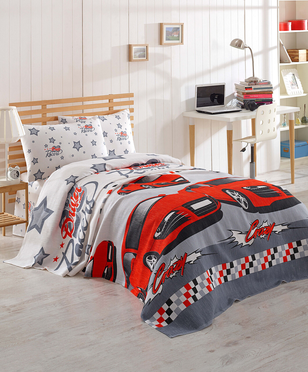 Cuvertura pique dubla Super King (EU) (IT), L'essentiel Maison, Crazy, Bumbac, Alb / Gri / Roșu