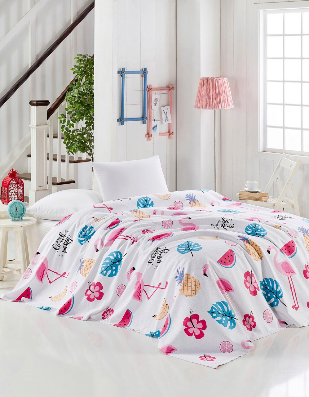 Cuvertura pique dubla Super King (EU) (IT), L'essentiel Maison, Kokteyl, Bumbac, Alb / Roz / Albastru / Galben
