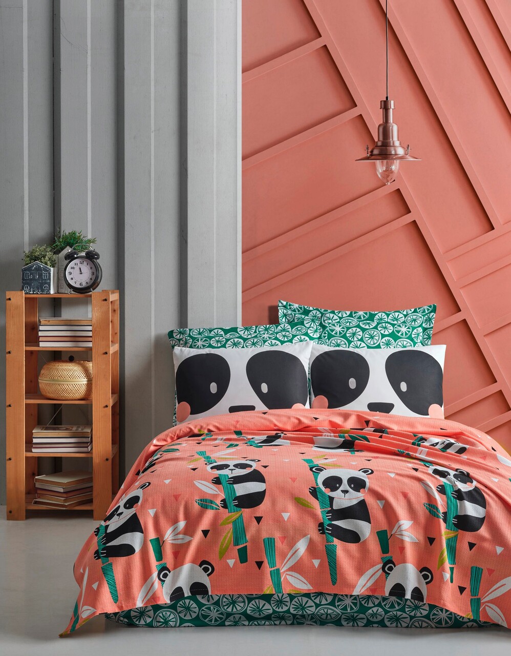Cuvertura pique dubla Super King (EU) (IT), L'essentiel Maison, Panida, Bumbac, Roz / Verde / Negru / Alb