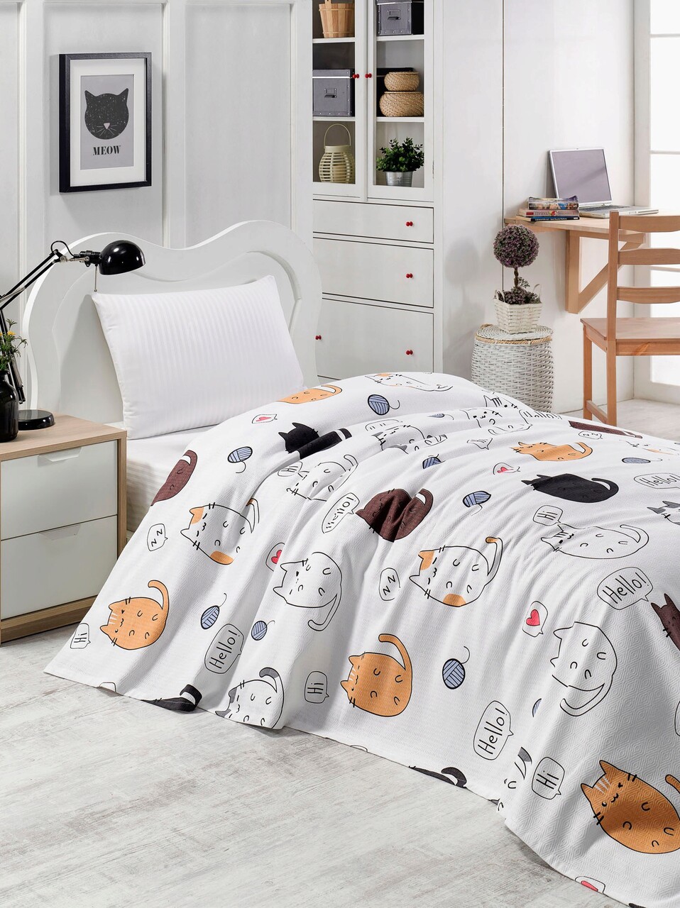 Cuvertura pique Single, Hello Cats, Eponj Home, Bumbac