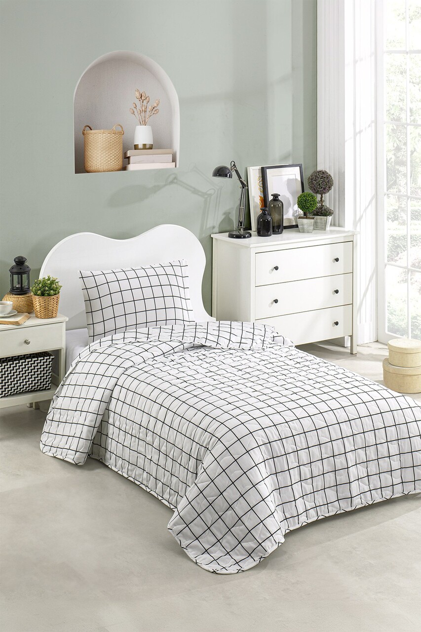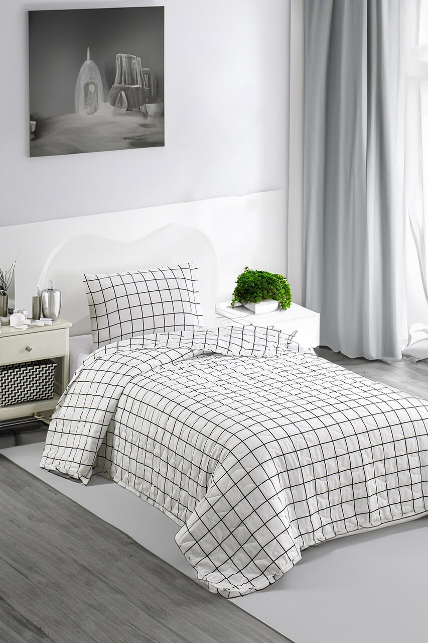 Cuvertura Single 155x200 cm, L'essentiel Maison, Artus, Alb/Negru
