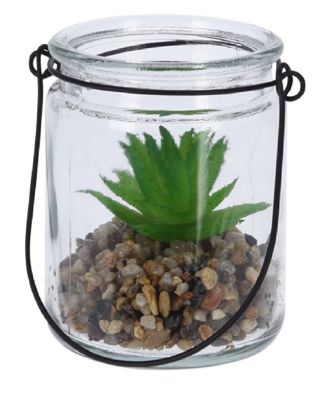 Decoratiune Aloe in jar, 8x9.7 cm, sticla