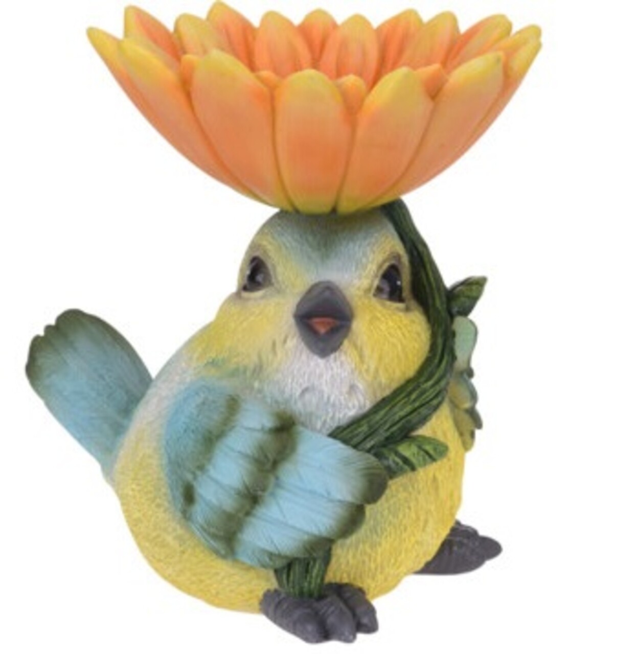 Decoratiune Bird with flower, 19x16x20.5 cm, polistone, portocaliu/galben