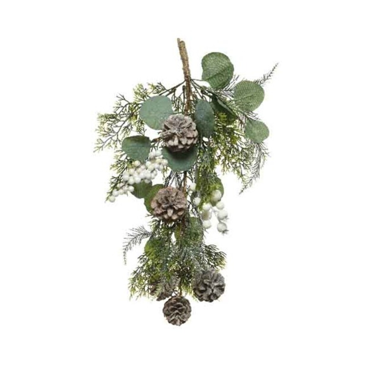 Decoratiune Bunch w berries, Decoris, 10x16x45 cm, polietilena, verde/alb
