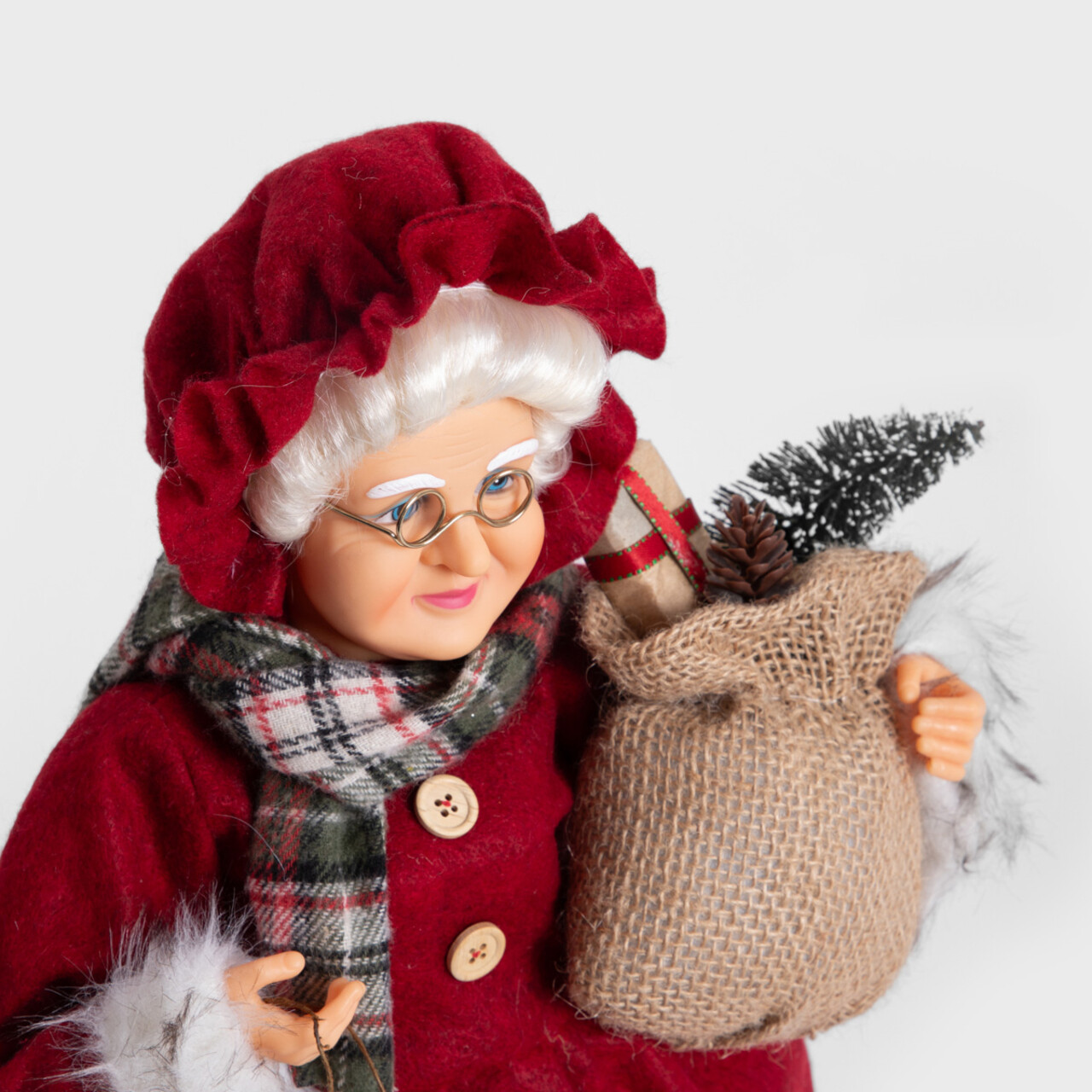 Decoratiune Bunica Craciun Clause, Homla, 45 cm, plastic/poliester, rosu