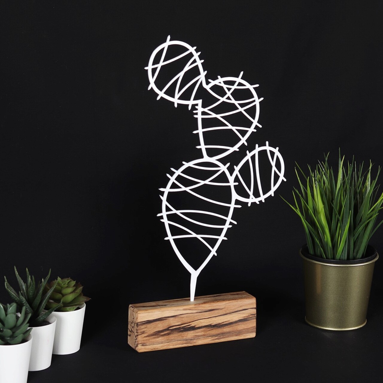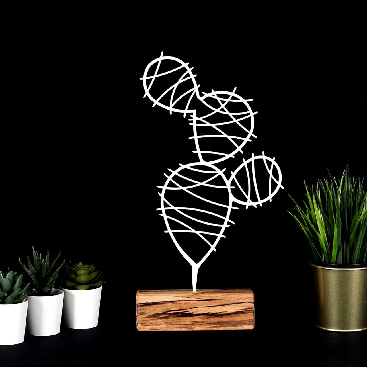 Decoratiune, Cactus Round, 17x40x3.5 cm, Metal, Alb