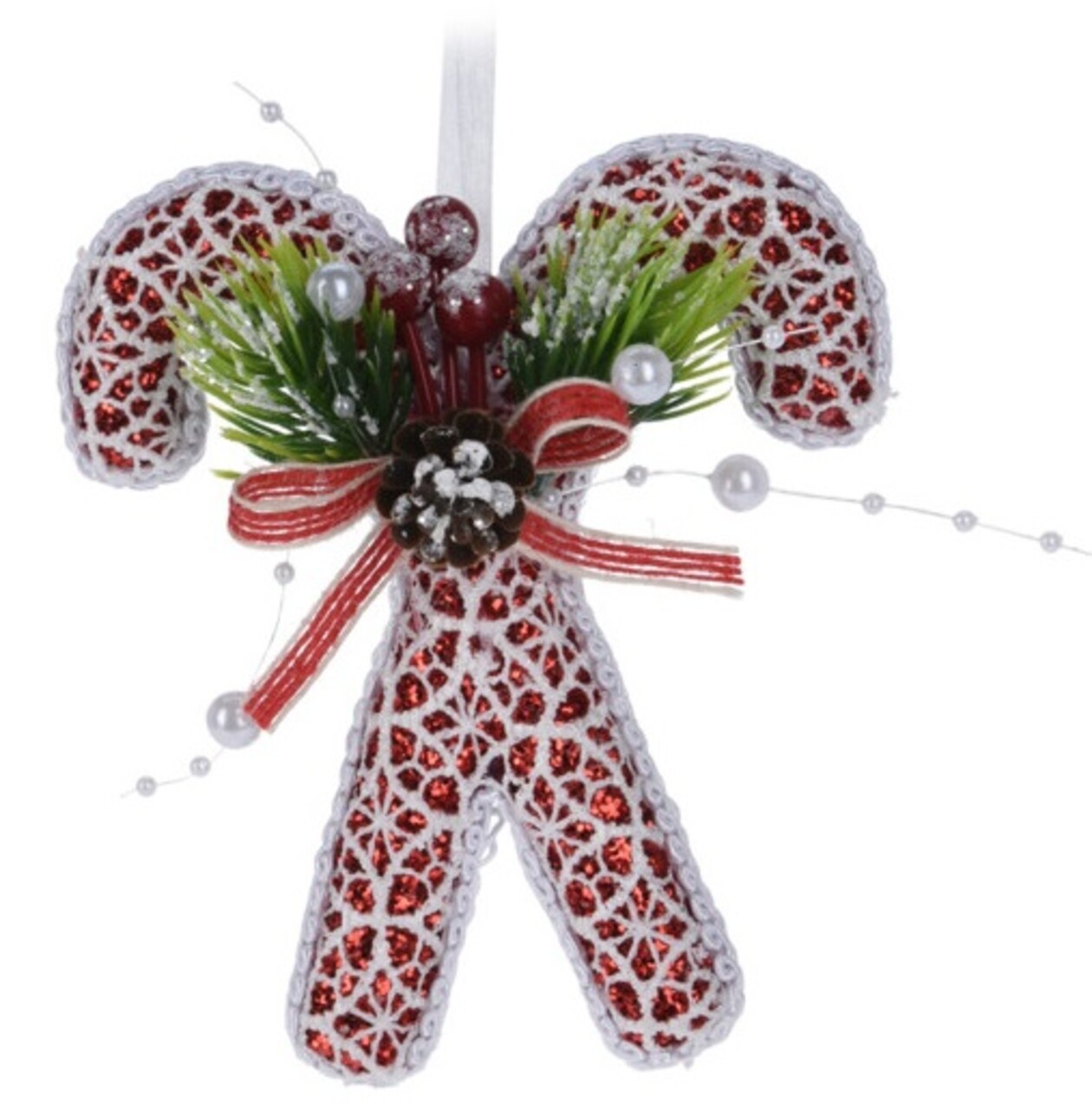 Decoratiune Candy w canvas pattern, 11x4x12 cm, poliester, rosu/alb
