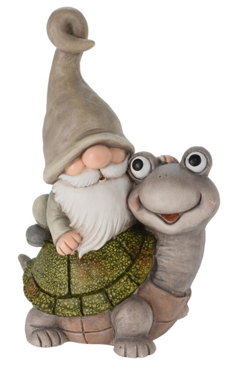 Decoratiune de gradina Gnome and turtle, 28x20x43 cm, oxidat de magneziu