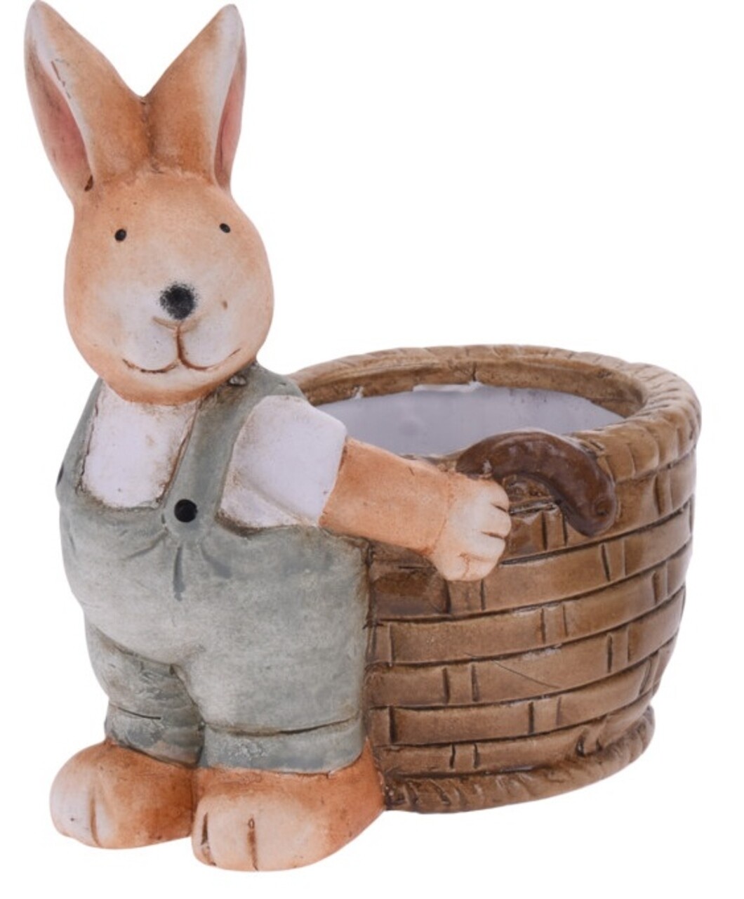 Decoratiune de paste Boy bunny with basket, 13x8.5x15.5 cm, teracota, gri